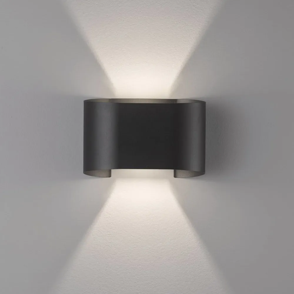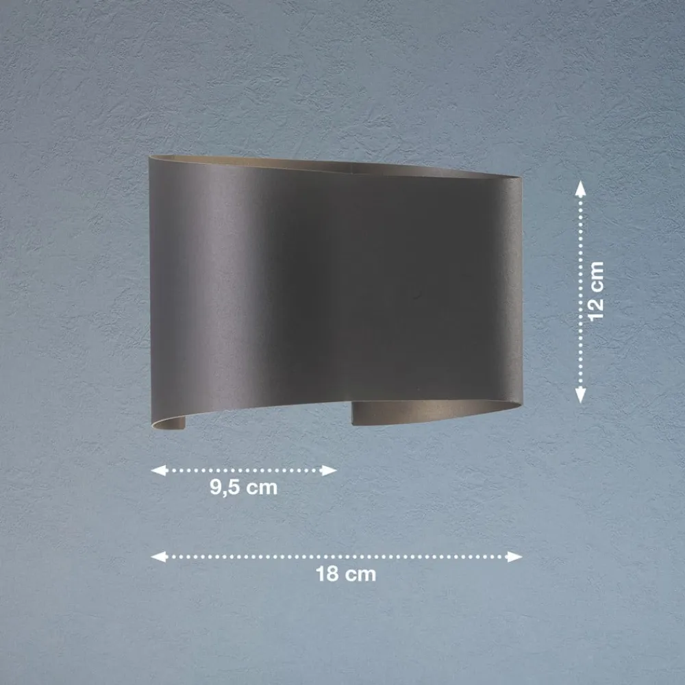 Moderne Wall LED-væglampe med justerbar strålevinkel Takket være det buede design kan Wall-væglampen nemt kombineres med moderne indretningsstile. Den er udstyret med varmhvide LED’er, og lyset udsendes både opad og nedad, hvorved lysudsendelsen er variabel og kan justeres efter behov. Det skaber et smukt lysspil på væggen, som ser meget effektfuldt ud og skaber en god lysstemning. Wall er en stænktæt væglampe og er derfor også velegnet til fugtige rum. Takket være kapslingsklasse IP44 kan armaturet også bruges til overdækkede udendørsområder til at fremhæve vægfacader og belyse gangstier på en sikker måde.