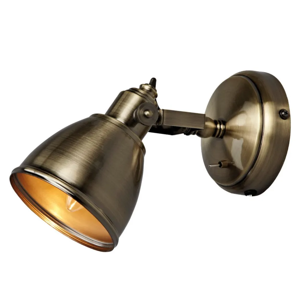 Flot FJÄLLBACKA væglampe med justerbart spotlight Det justerbare spotlight gør Fjällbacka væglampen ekstremt alsidig – uanset om det er som læselampe ved siden af sengen eller som accentbelysning i stuen. Det tiltalende antikke design skaber en hyggelig stemning. Lampen har en praktisk afbryder og leveres med et 1,5 m langt forsyningskabel og et eurostik.