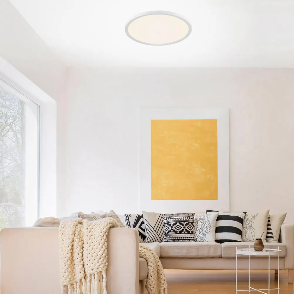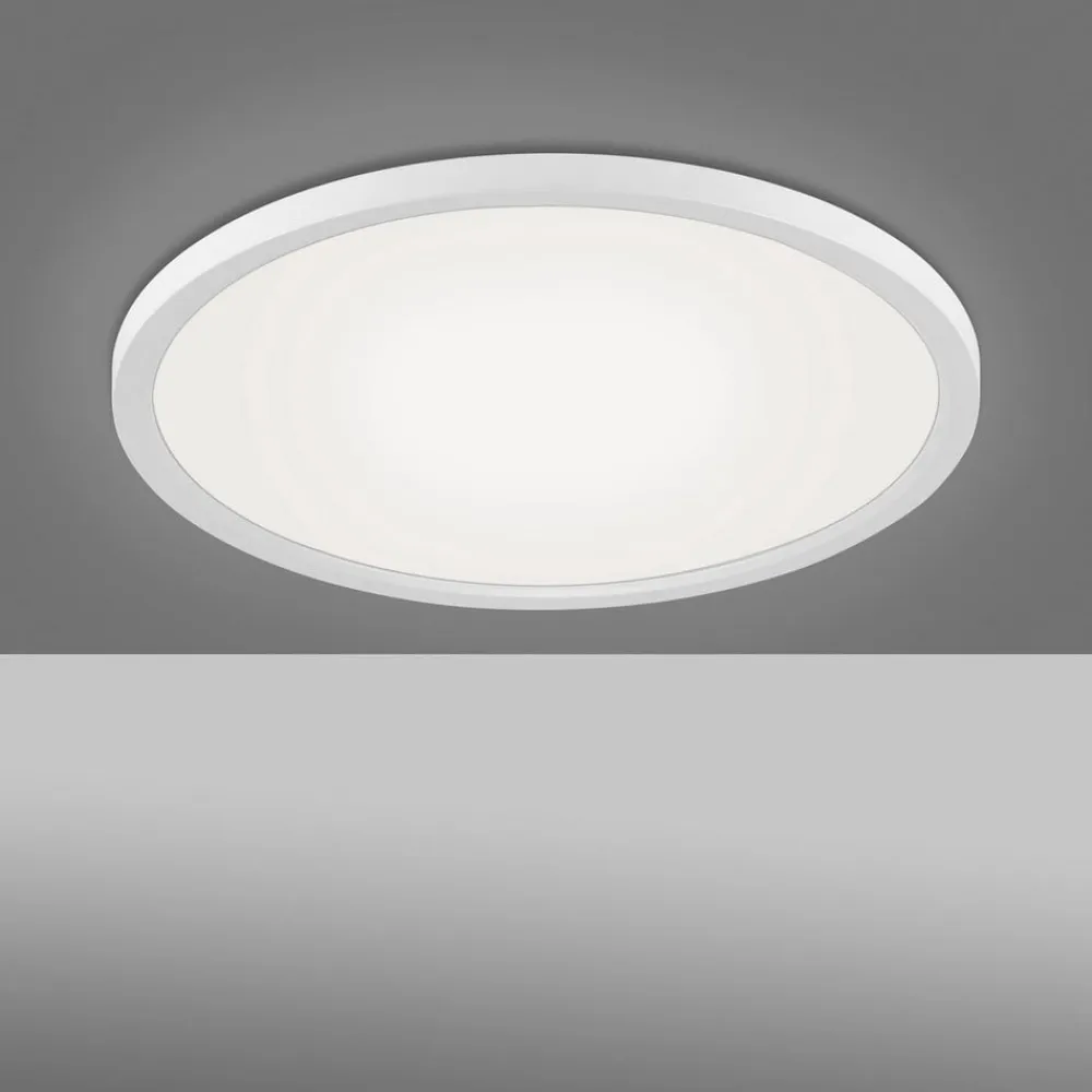 Rund og flad gør denne LED-loftlampe Flat også værelser med lave lofter lyse og indbydende uden at blænde, hvilket er muligt takket være plastdiffusoren. Deres homogene lysfordeling fordyber hvert rum i et behageligt lys, som også bekvemt kan styres via en fjernbetjening , der er inkluderet i leveringsomfanget. lysfarve kan tilpasses den aktuelle situation via fjernbetjening, og i kombination med dæmpbarheden kan en typisk daglig rutine simuleres. Lysstyrken kan indstilles som ønsket, og takket være hukommelsesfunktionen kan de individuelle indstillinger gemmes direkte.