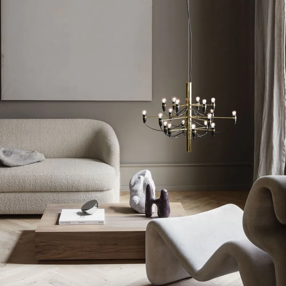 Minimalistisk LED-lysekrone i moderne æstetik – FLOS 2097/18Lampen med 18 flammer 2097/18 fra FLOS er en moderne designstruktur, der forener modernitet og klassicisme i form af denne usædvanlige lysekrone. På stålsøjlen i midten er der forskellige lange arme, som hver især bærer LED-lampen i matteret optik, der er placeret i enden. Dette, samt det sorte forsyningskabel, er bevidst vist åbent og giver 2097/18-lysekronen sin helt særlige og individuelle charme. Uanset om den er placeret over spiseborde eller i stuen, giver den moderne LED-lysekrone 2097/18 et særligt præg til ethvert rum og er et spændende blikfang og en pålidelig lyskilde på samme tid. Ansvarlig for dette ekstraordinære design i sin oprindelige form er den italienske industrielle designer Gino Sarfetti (1912-1985), der betragtes som en af de vigtigste designere af lamper og lamper i det 20. århundrede. Designet af 2097-lampen blev skabt i 1958 og har intet mistet af sin stilfulde elegance den dag i dag.