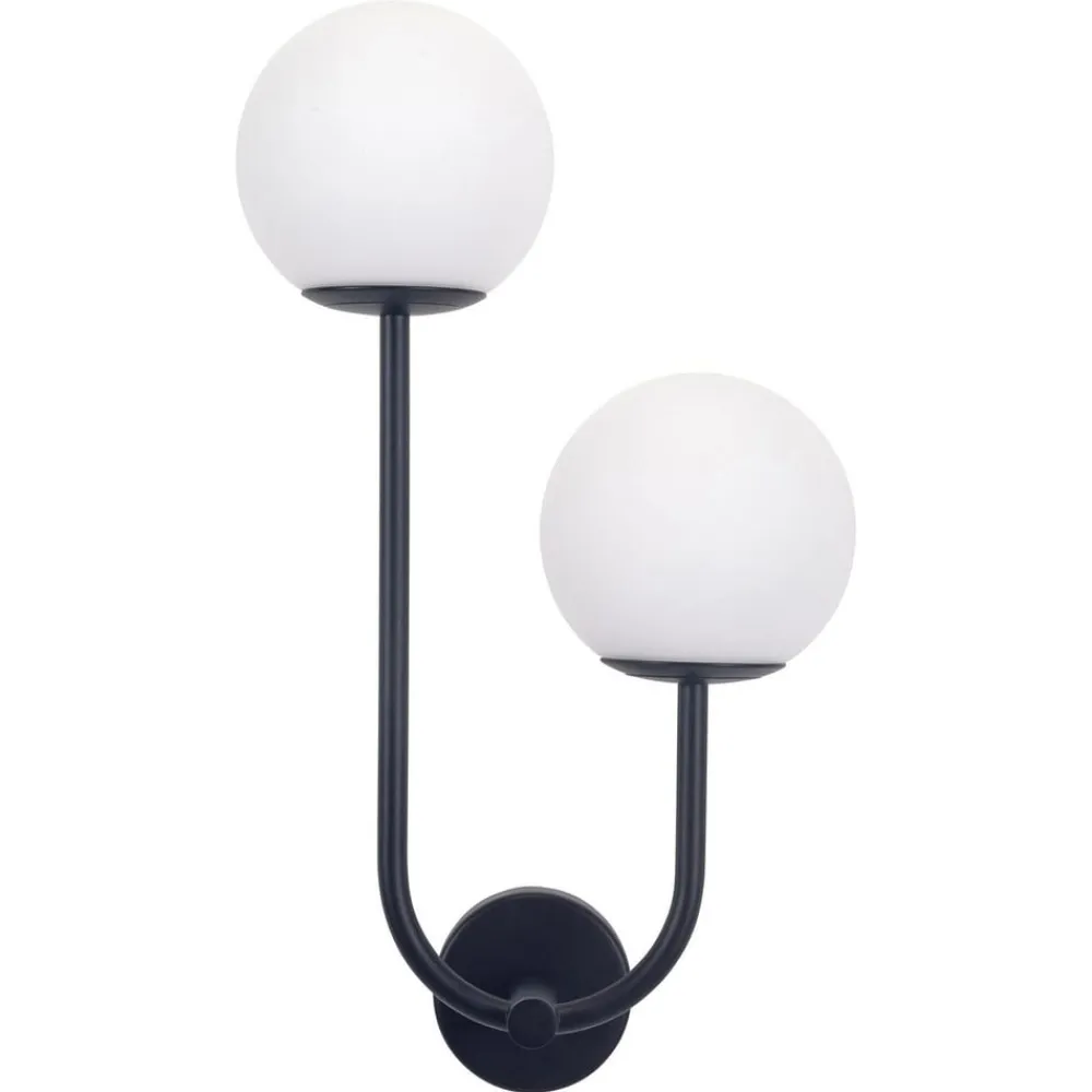 Sfera Double væglampe med 2 lyskilder: kan også bruges på badeværelset Sfera Double væglampen imponerer ikke kun med sit moderne design i sort og de to sfæriske glasskærme, men også med sin alsidighed. Denne lampe er perfekt til at skabe en stemningsfuld atmosfære i forskellige rum som f.eks. badeværelser, gange, stuer eller spisestuer. Sfera Double væglampen er et mesterværk inden for belysning, der værdsættes både for sit æstetiske udseende og for sin evne til at forvandle atmosfæren i et rum. Med sin enkle elegance og bløde lysfordeling er den den ideelle løsning for alle, der sætter pris på stil og funktionalitet – eksternt dæmpbar