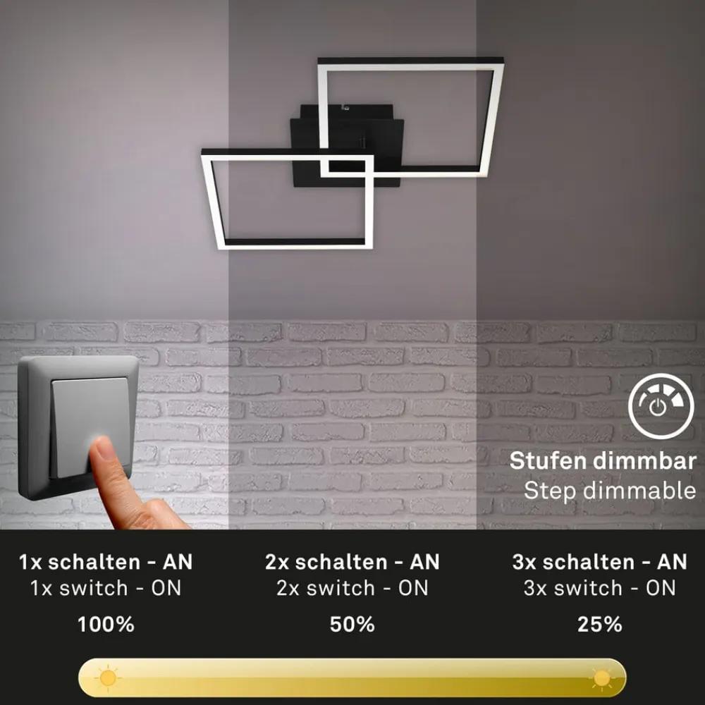Frame LED-loftlampe, 2 lyskilder, Switch dim, sort