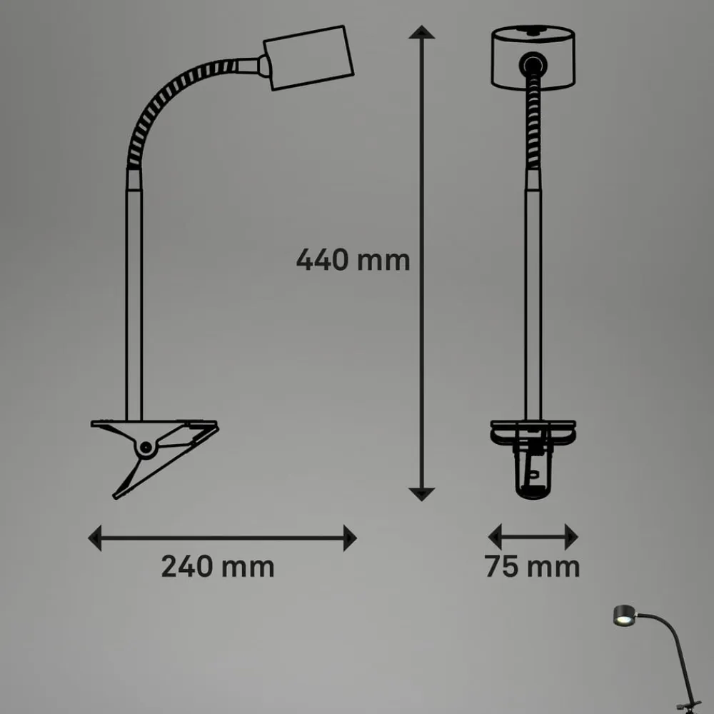 Genopladelig klemmelampe Tari, sort, CCT, touchdæmper, USB^Briloner Discount