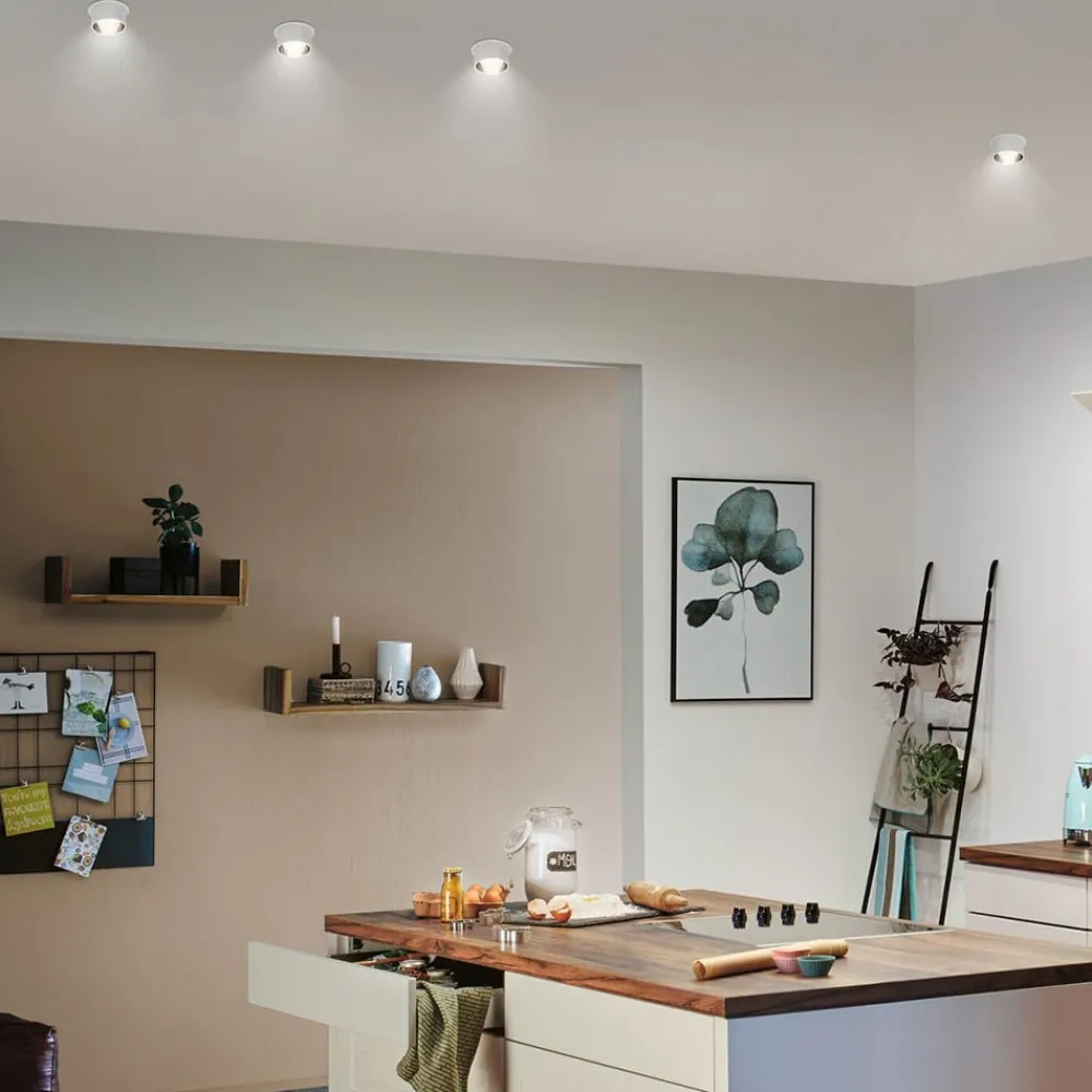 Dæmpbar Gil LED-indbygningslampe med dekorativ cylinder Gil LED-indbygningslampen giver dekorative HighLights i ethvert rum: Den er udstyret med en fremspringende dekorativ cylinder med en lav installationsdybde i forhold til de dybtliggende lyspunkter. LED’erne spotlighter varmhvidt lys for en behagelig atmosfære. Lysstyrken kan nemt justeres i tre trin ved hjælp af den almindelige lyskontakt: 1 x kontakt: 100 %, 2 x kontakt 50 % og 3 x kontakt 25 %. Om nødvendigt kan pæren udskiftes af en specialist. LED-indbygningsspottene kan kobles sammen i det uendelige Indbygningsspottet Gil er beskyttet mod indtrængning af stænkvand med kapslingsgrad IP44 og er derfor også egnet til installation i badeværelser og andre fugtige rum – til direkte tilslutning af 230V