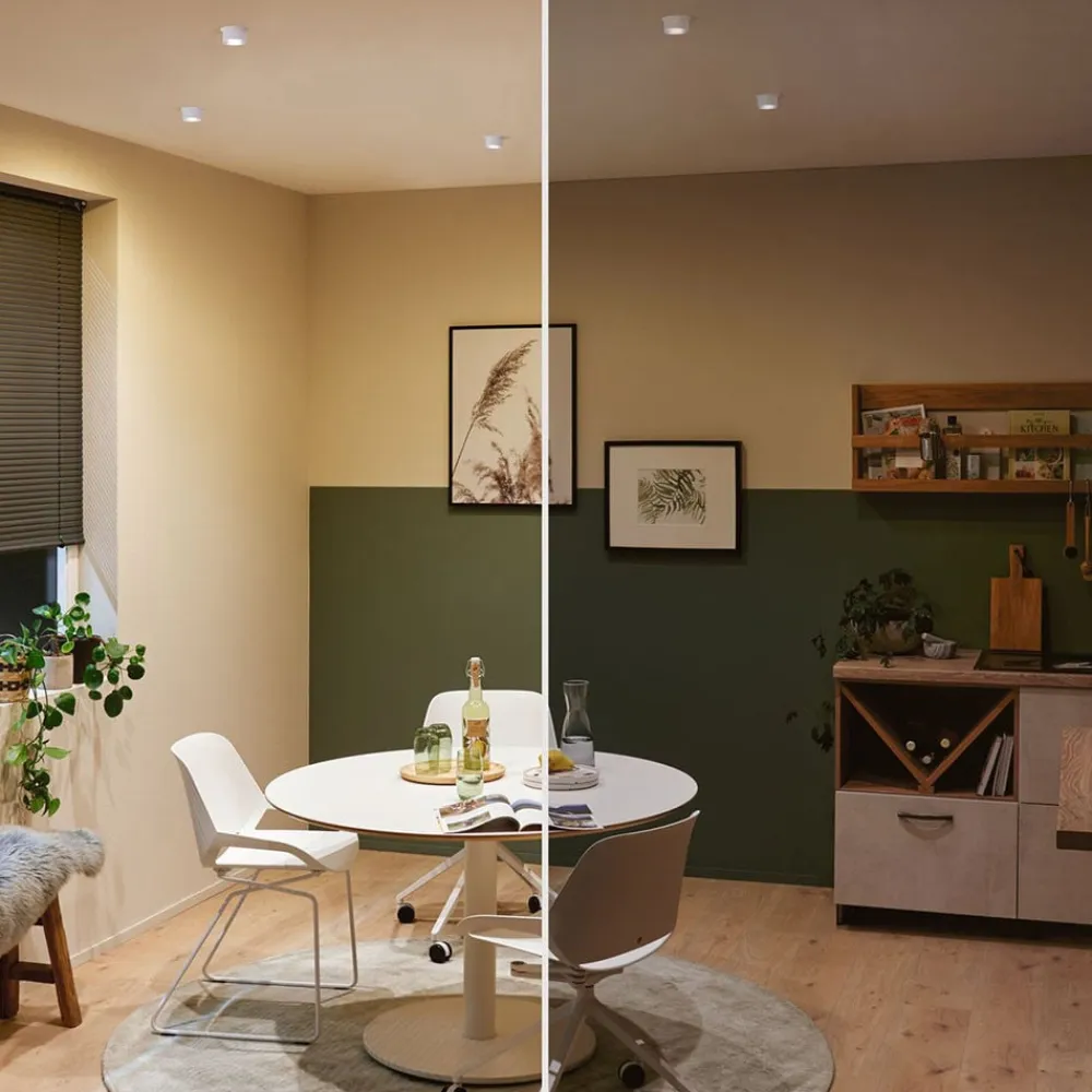 Tofarvet LED-indbygningslampe Gil i et sæt med tre – dæmpbar i 3 niveauer Indbygningslamper som Gil skaber lysaccenter i moderne boligområder: Denne LED-indbygningslampe i et sæt med 3 kan endda bruges i badeværelset, saunaen og andre fugtige rum takket være IP44-beskyttelsesgraden. Den dekorative cylinder stikker lidt ud. De dybere lyspunkter udsender varmt hvidt lys og teknisk brillans: De kan kobles sammen i det uendelige, og deres lys kan dæmpes i tre trin ved hjælp af den normale vægkontakt for at opnå den ønskede lysstemning: 100 %, 50 % eller 25 %. LED’erne er også udskiftelige og bør udskiftes af et specialfirma – 230 V direkte tilslutning