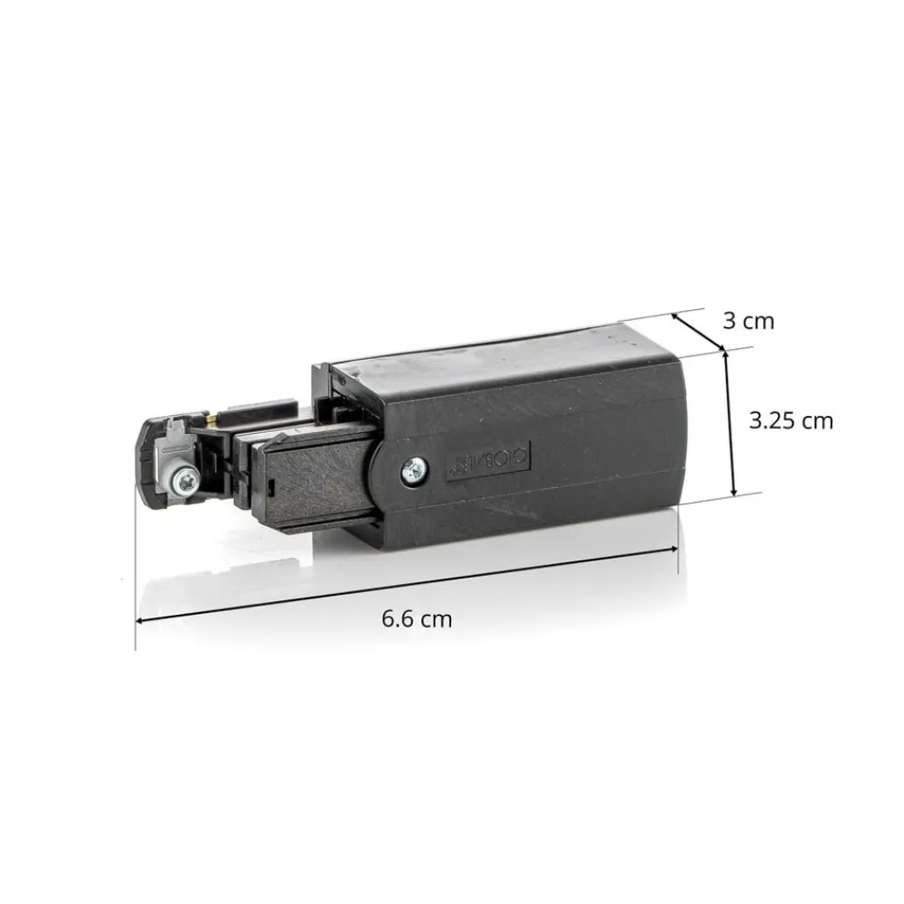 Ikke kun strømforsyningen, men også den perfekt passende afslutning, det er endetilkobling til venstre for 3-faset Noa-strømskinnen. endetilkobling er matchet i farve.