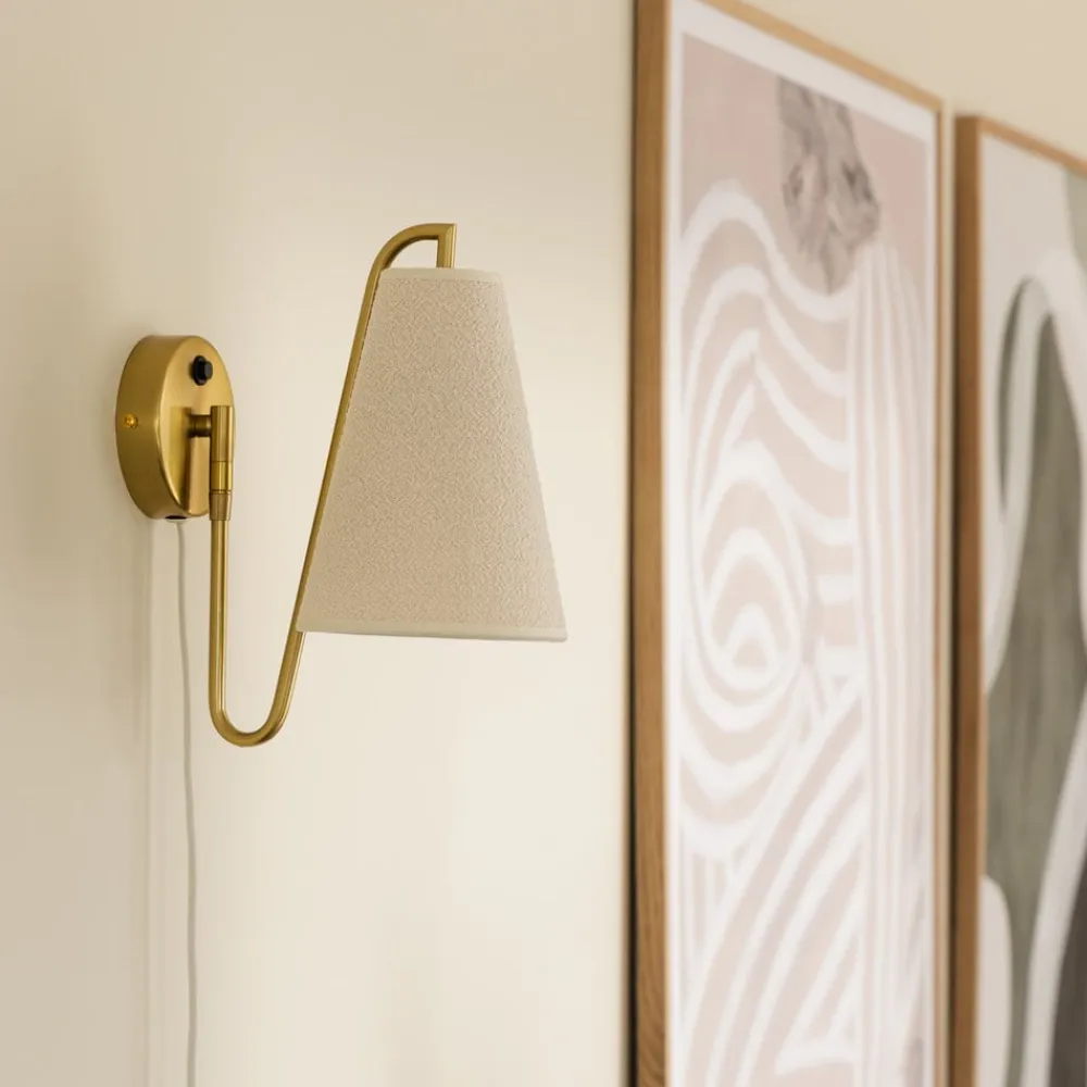Væglampe Lou Bouclé fra Globen Lighting forener skandinavisk enkelhed med et strejf af elegance. Samspillet mellem blødt bouclé-stof og metalliske accenter i messing skaber en harmonisk balance mellem hygge og stilfuld raffinement. Den diskrete farve i hvid og messing passer perfekt ind i forskellige boligkoncepter og sætter samtidig et smagfuldt præg.