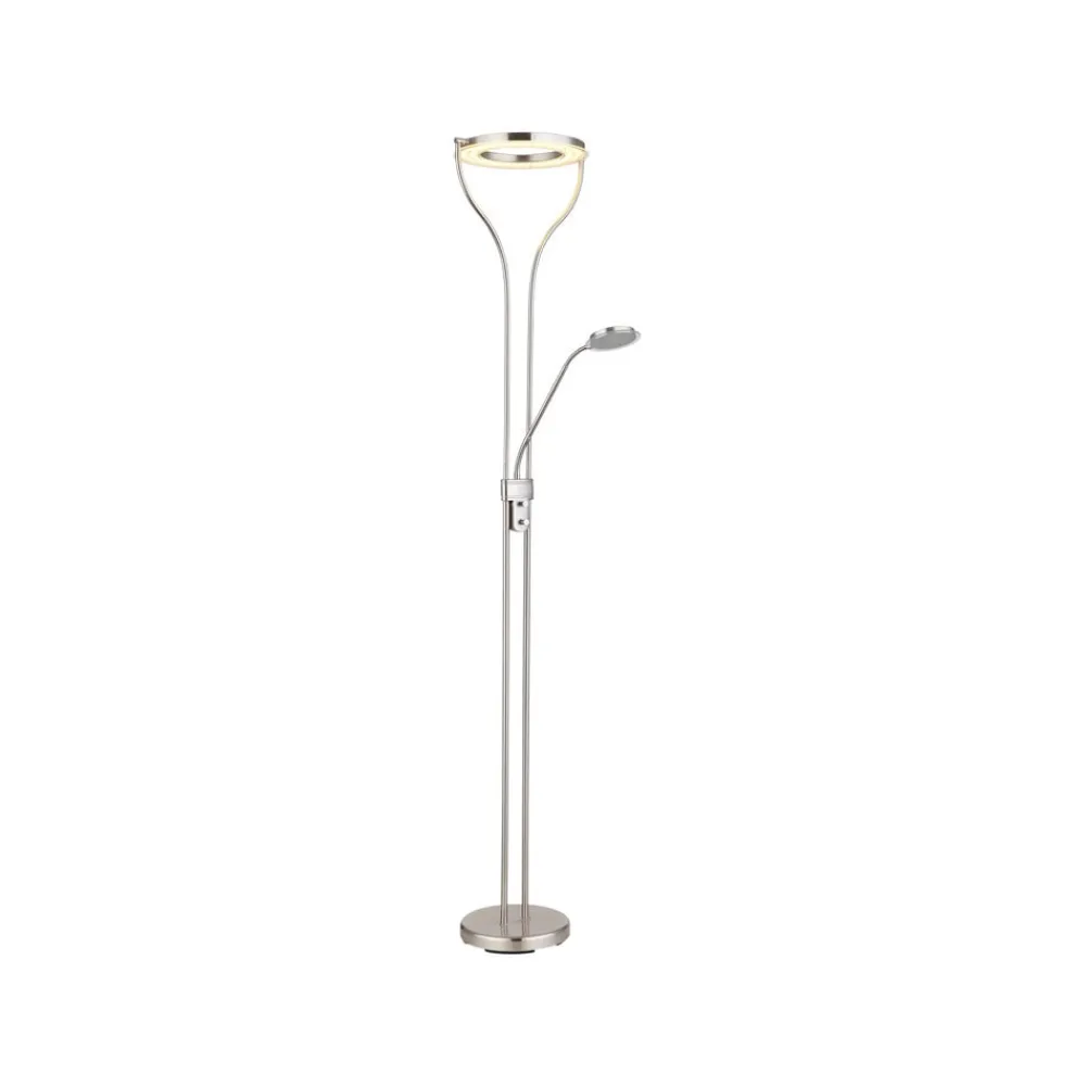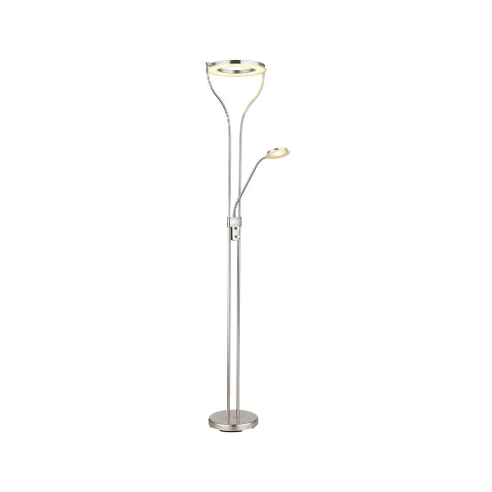 LED-gulvlampe Ebro, højde 194 cm, nikkelfarvet, 2-lys.