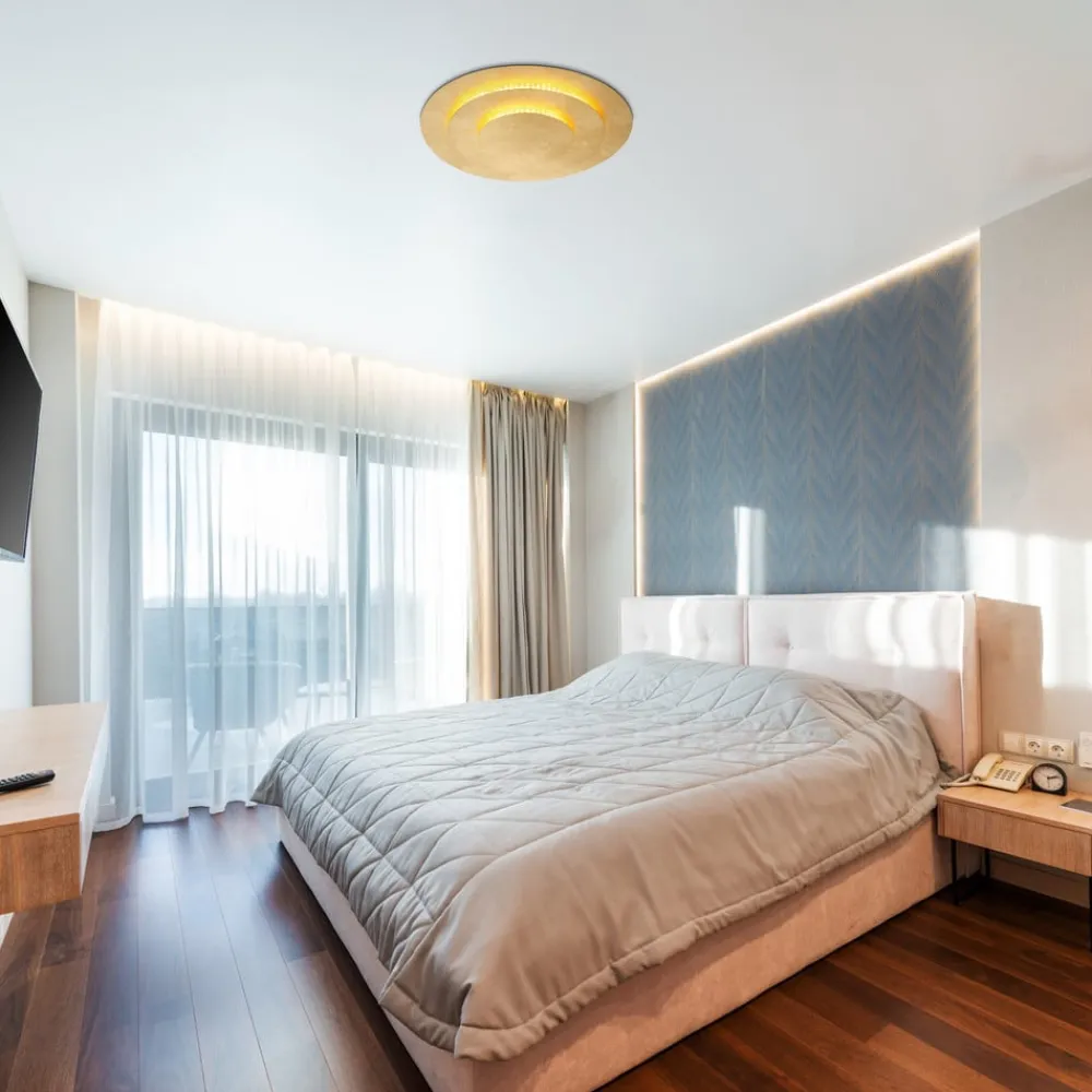 Heda LED-loftslampe, Ø 35 cm, guldfarvet, metal