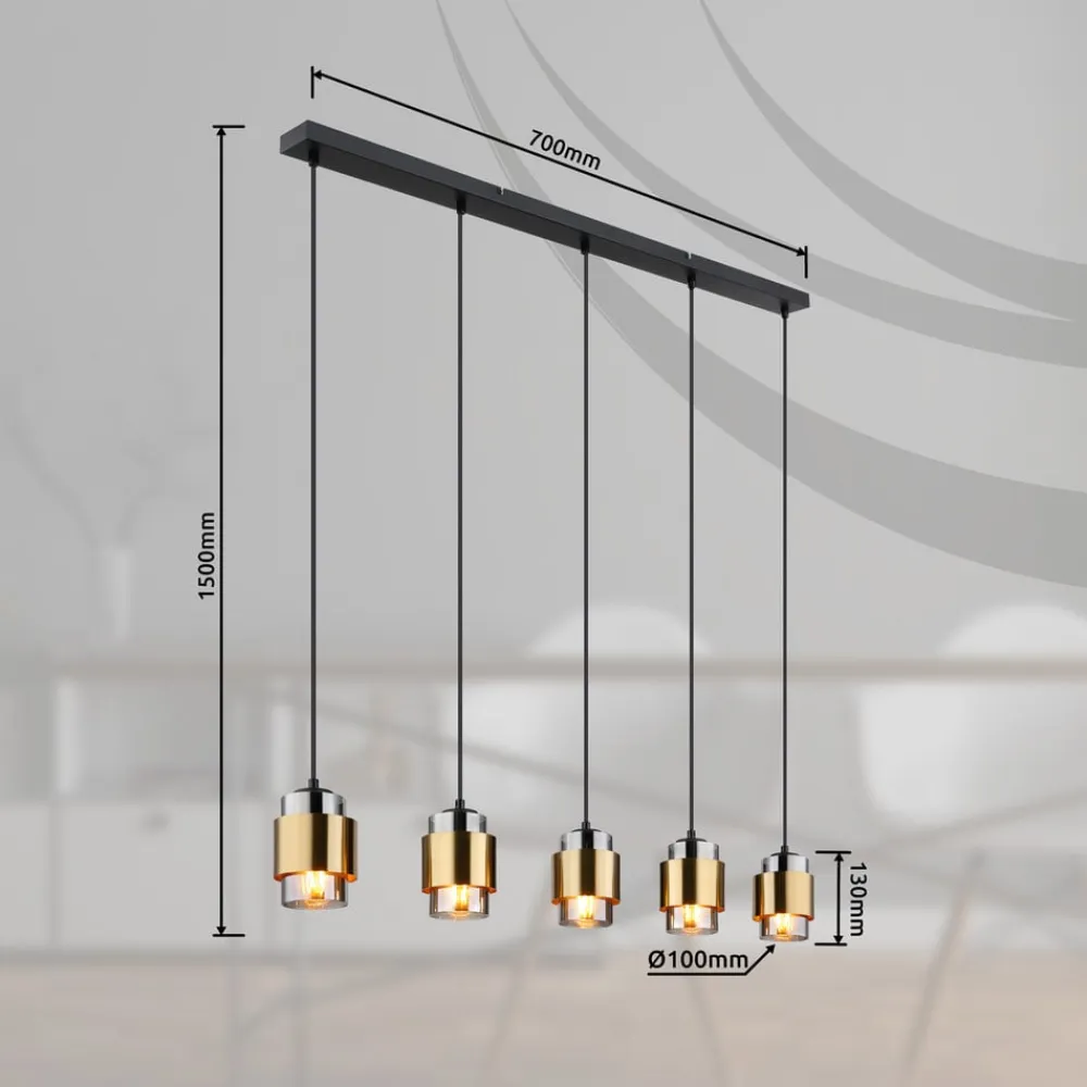 Milley hængelampe, længde 105 cm, messingfarvet, 5 lyskilder.