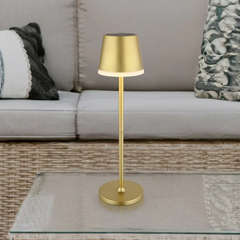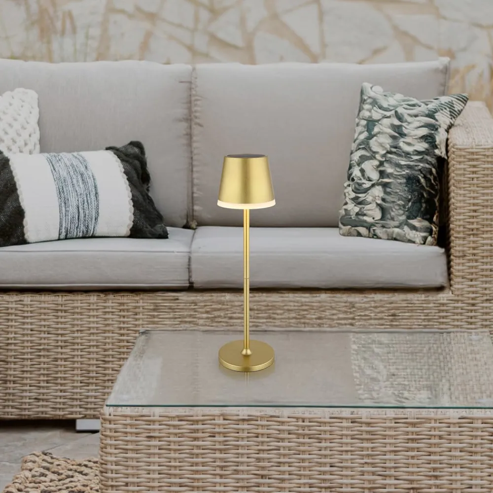 Globo Solcellelamper>LED-solcellelampe, metal, guldfarvet, højde 41 cm, IP44