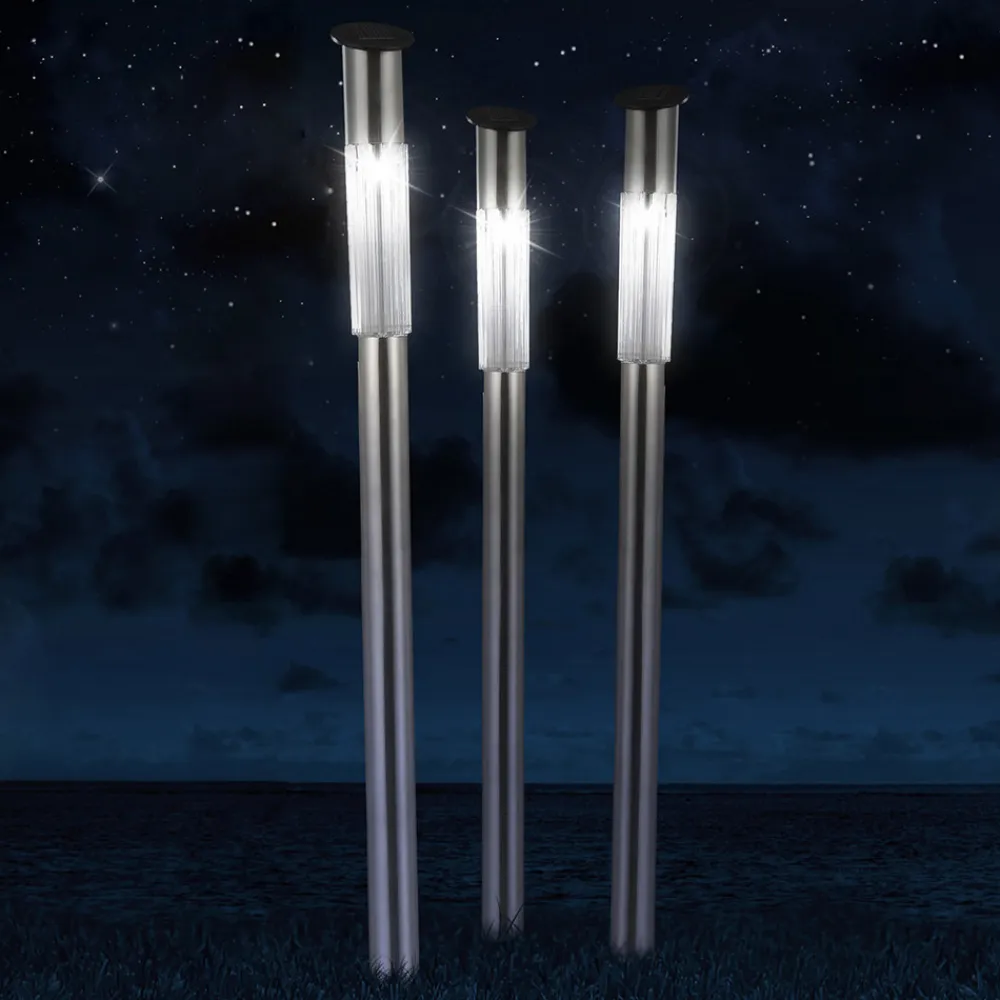 Fania-lampen er udstyret med en jordspyd, der sikrer et fast fodfæste på forskellige underlag. Denne udendørslampe, der leveres i et praktisk sæt med tre, er primært beregnet til belysning af havegange. Men lampen er også velegnet til at understøtte lyskonceptet i indgangspartiet.