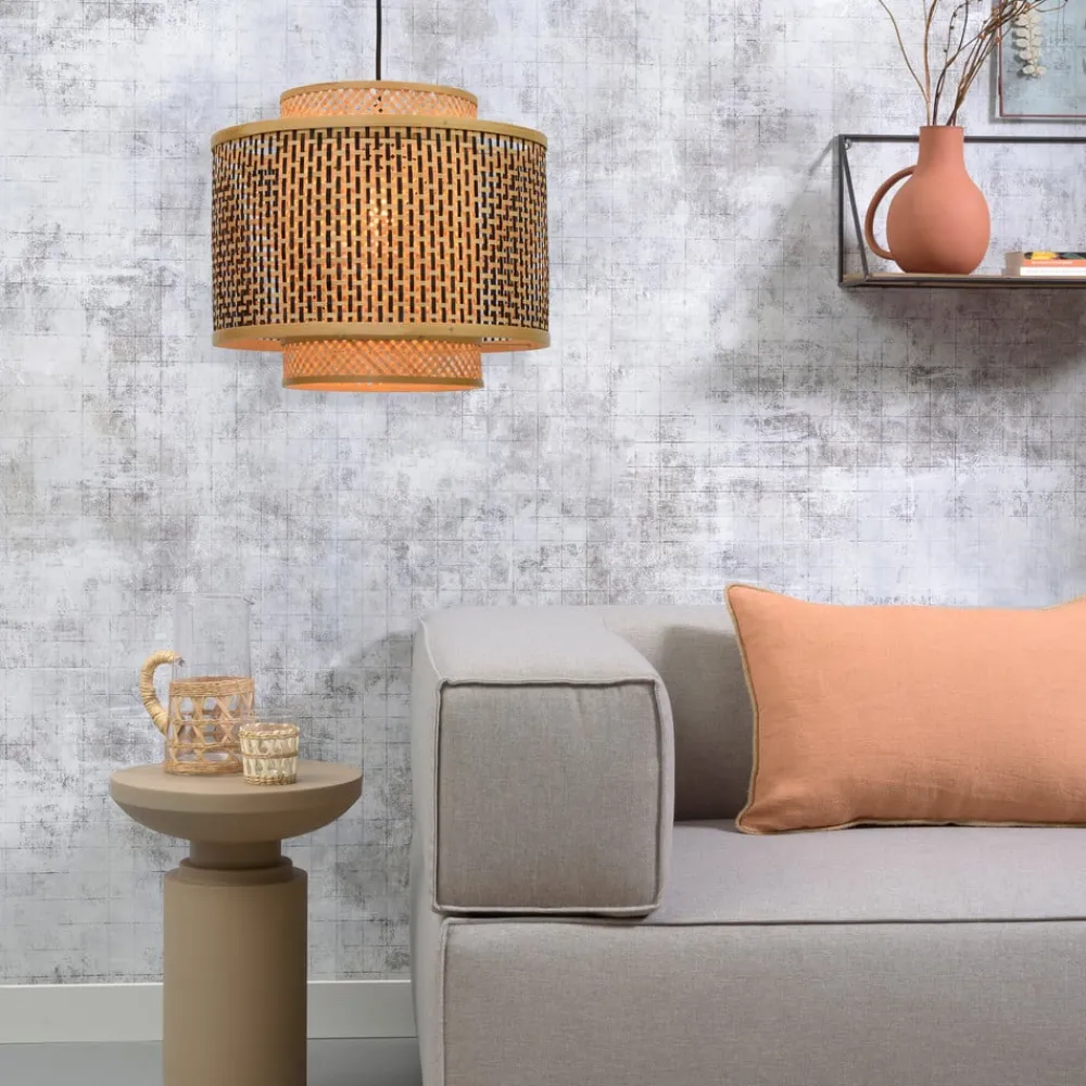 Lavet af bæredygtigt bambus – vedhængslampe Bhutan med dobbeltskærm