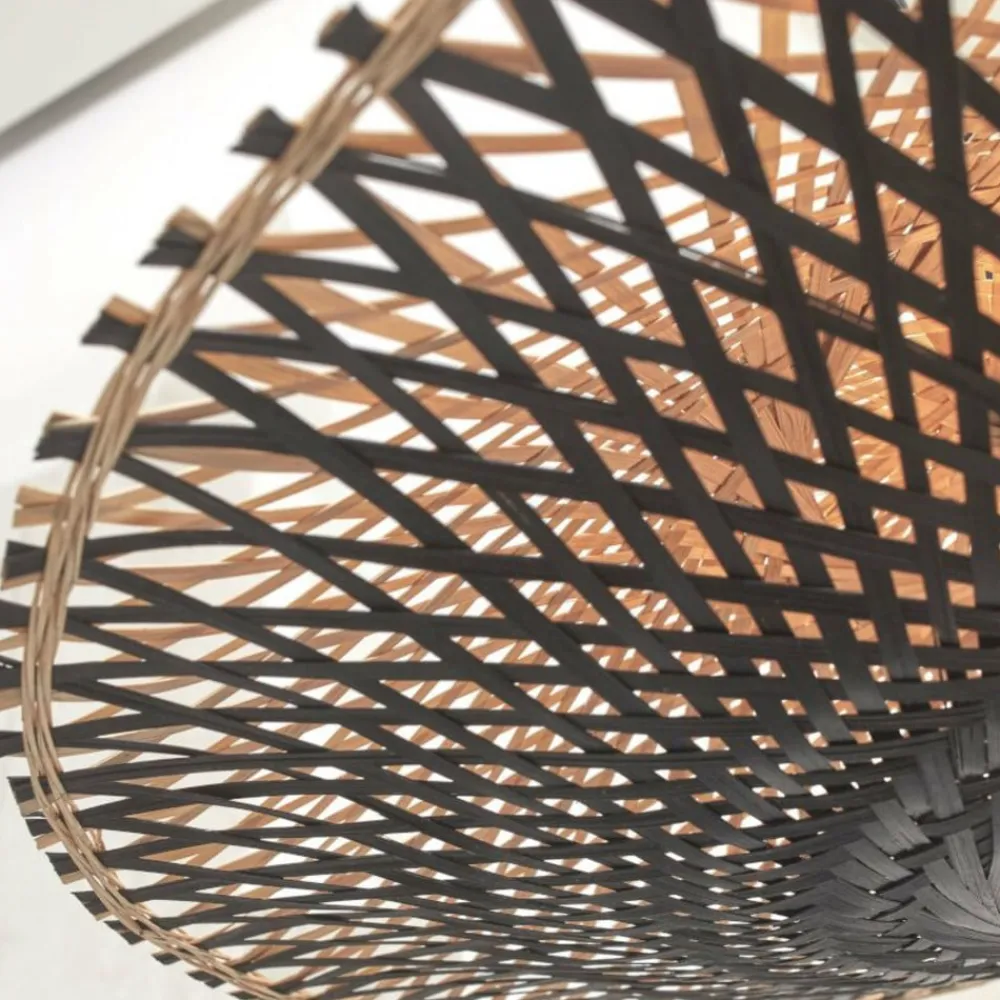 Kalimantan loftslampe lavet af bambus – håndlavet Kalimantan er en loftslampe fra det hollandske mærke Good & Mojo, et mærke fra belysningsproducenten It’s about Romi, hvis skærm blev vævet i hånden af bambus. Den er lavet af bambus og designet i en sort/naturlig farvekombination. Derudover overbeviser skærmen med sin flade form og passer diskret ind i forskellige miljøer. Det indvendige lysstof er dækket af skærmen, så lyset sendes ud gennem åbningerne, hvilket giver en behagelig lyseffekt og flotte lys- og skyggeeffekter. Mærket Good & Mojo har gjort det til sin opgave at distribuere bæredygtige lamper og dermed gøre noget godt for mennesker og miljø. Lamperne er udelukkende produceret af bæredygtige materialer, og de fleste skærme er vævet i hånden i små landsbyer i Vietnam, hvilket sikrer levebrødet for mange familier der. Good & Mojo støtter WakaWaka Foundation, en organisation, der bruger sine donationer til at levere solprodukter til mennesker i fjerntliggende områder uden elektricitet. I samarbejde med Eden Reforstation Projects bliver der plantet et træ for hvert Good & Mojo-armatur, der bliver solgt. Siden 2019 er der allerede blevet plantet mere end 150.000 træer