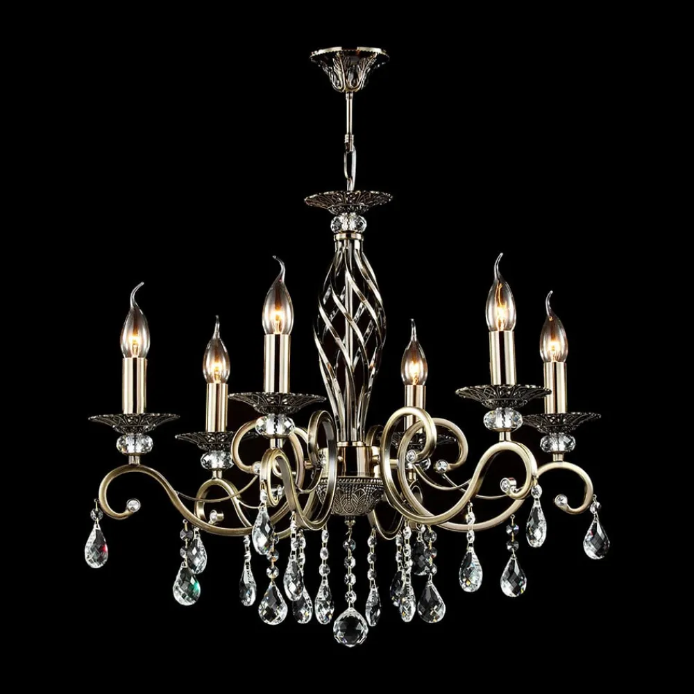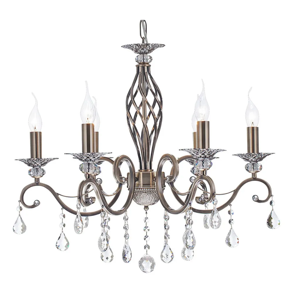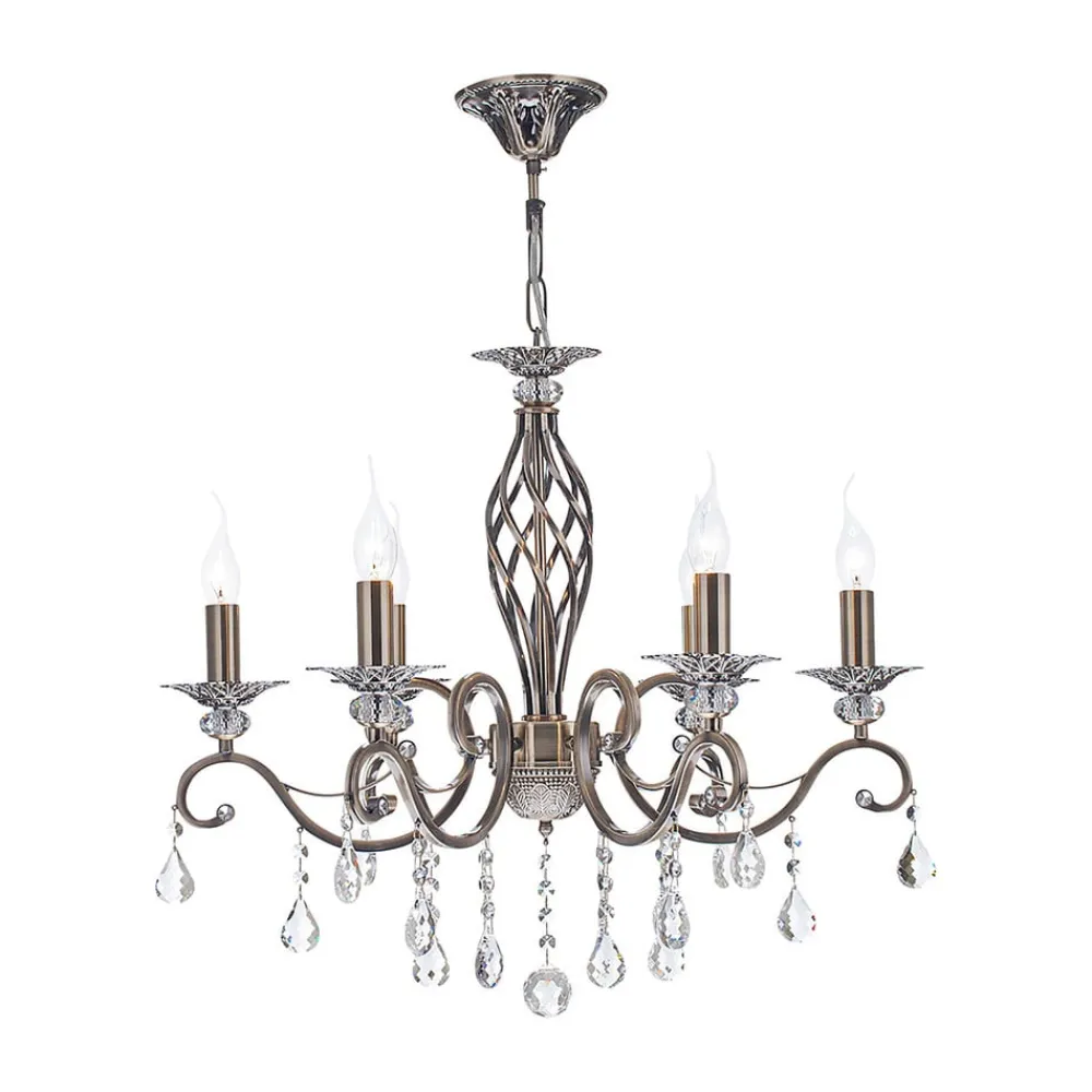 Maytoni Grace lysekrone, 6 lyskilder, messing/hvid