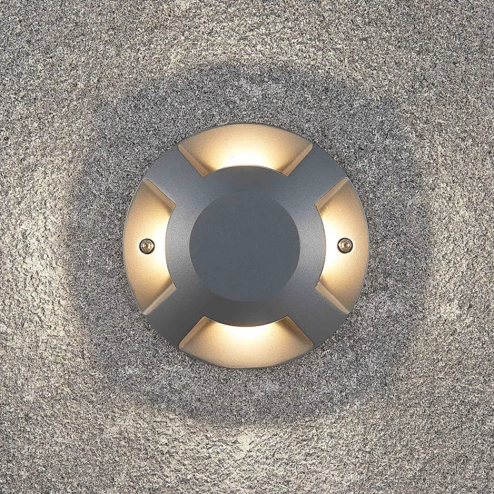 Rund gulv-spotlight med LED Jeffrey med lysudgang til fire sider, kapslingsgrad IP67
