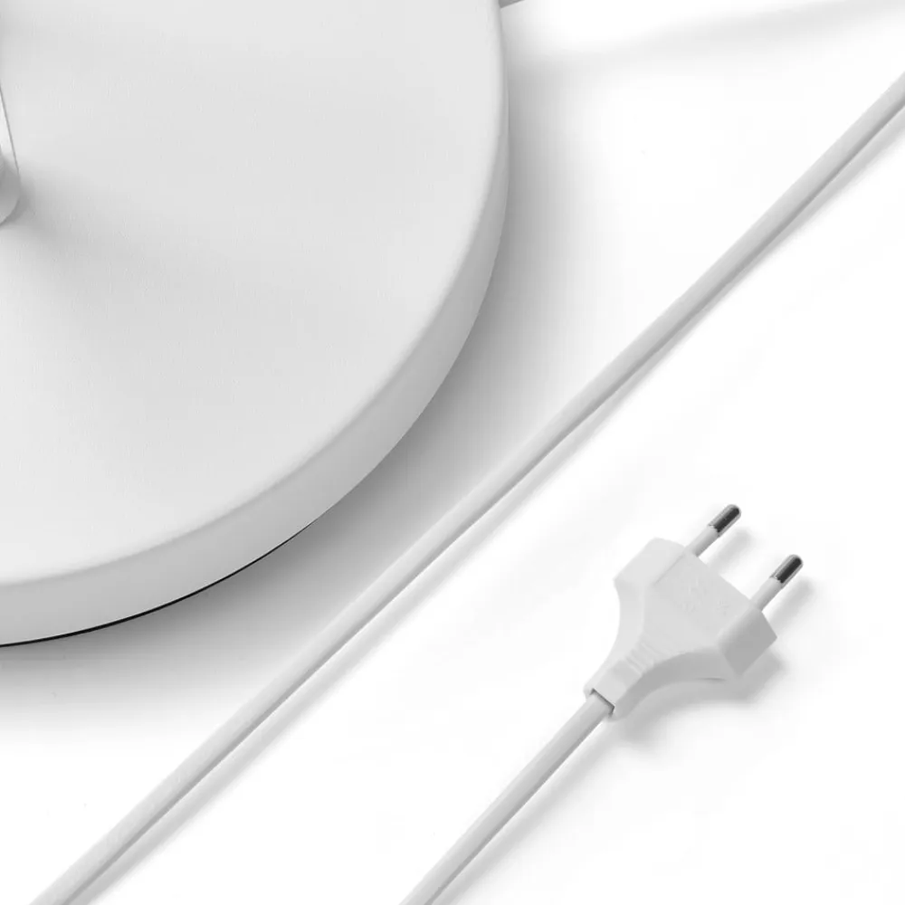 2 lyskilder gulvlampe Medira i skandinavisk stil med hvid finish og gylden skærm på indersiden Medira imponerer straks med sit minimalistiske design og stilfulde udtryk, hvilket gør den til den perfekte gulvlampe til skandinaviske boligstile, hvor disse egenskaber – dvs. fraværet af unødvendige detaljer og et stilfuldt overordnet design med et æstetisk formsprog – er særligt værdsat. Flexelementer i den øverste del af armaturet gør det muligt at justere de to identisk udseende lyskilder efter behov. Det betyder, at to personer kan nyde godt af fordelene ved gulvlampen, som er ideel som læselampe i stuen. Til dette formål kan de to lys også betjenes separat ved hjælp af to kontakter på lysrammen. Skærmene er tonet gyldne på indersiden, hvilket passer perfekt til det overordnede design og også tilføjer en varm tone til lysbilledet.