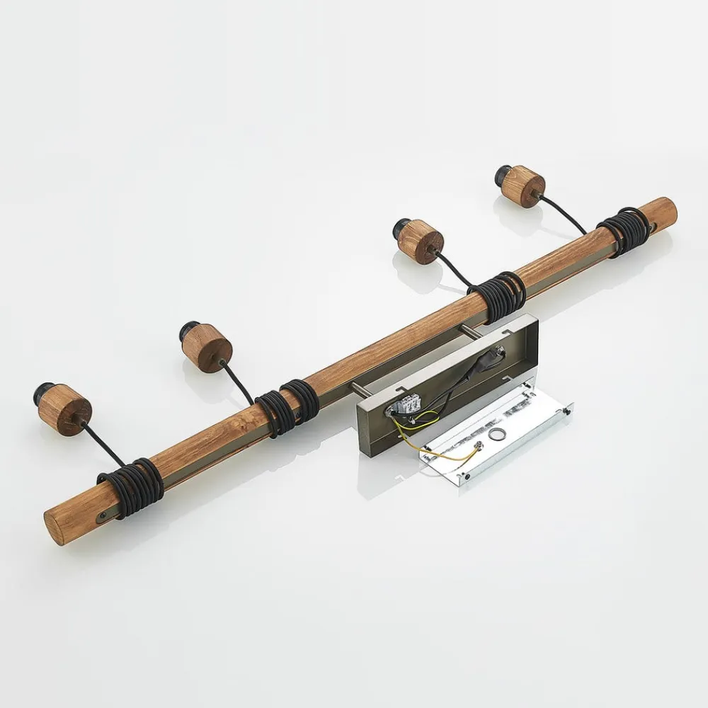 hængelampe Durbis, 116 cm, 4 lyskilder, grå, træ, E27^Lindby Online