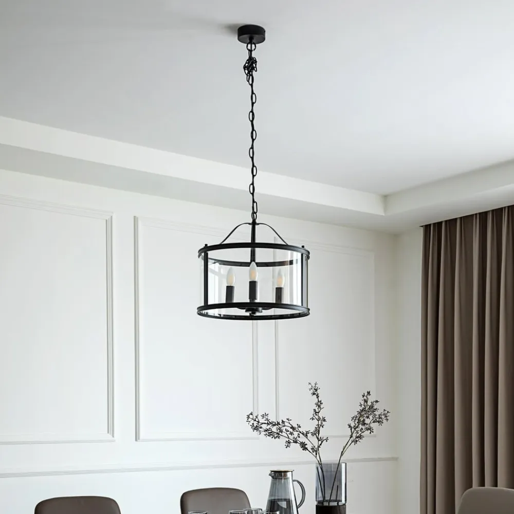 Slående Eryk hængelampe med lygte-look Denne lampe vil også lyse op i dit hjem. Du kan justere lysstyrken, så den passer til dit humør, ved hjælp af en ekstern dæmper (medfølger ikke). Loftlampen supplerer dit personlige indretningskoncept perfekt takket være sin enestående stil og er en fantastisk dekoration, selv når den er slukket. Den imponerer med Lucande-mærkekvalitet og står derfor for en fremragende boligoplevelse og gennemtænkt design. Loftlampen i sort og transparent skiller sig ud i dit rum og skaber en vidunderlig atmosfære. Den er udstyret med en fatning på E14. Hængelampen vil glæde dig og kan effektivt integreres i en lang række forskellige indretningsstile. Fremhæv den hyggelige feelgood-atmosfære på dine fire vægge med denne hængelampe.