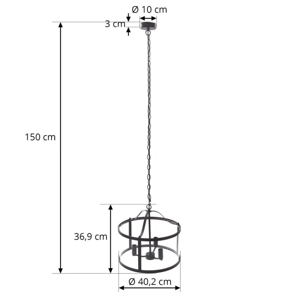 hængelampe Eryk, Ø 40 cm, sort, glas, 3 lyskilder^Lucande Online