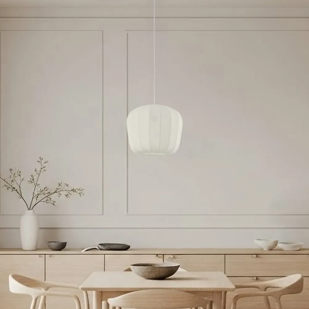 Helin 1 lyskilde hængelampe med hvid stofskærm Helin hængelampen kombinerer moderne design med skandinavisk enkelhed og skaber en atmosfære, der indbyder til både afslapning og kreativt arbejde. Den hvide stofskærm giver en blød lysfordeling, der forvandler spisestuer, stuer og soveværelser til indbydende rum. Selvom der ikke medfølger en dæmper, kan lysets intensitet justeres efter individuelle præferencer ved at tilslutte den til en ekstern dæmper (bemærk, at den eksterne dæmper skal købes separat). Med sine klare linjer og harmoniske farveskema er denne hængelampe et HighLight i ethvert rum.