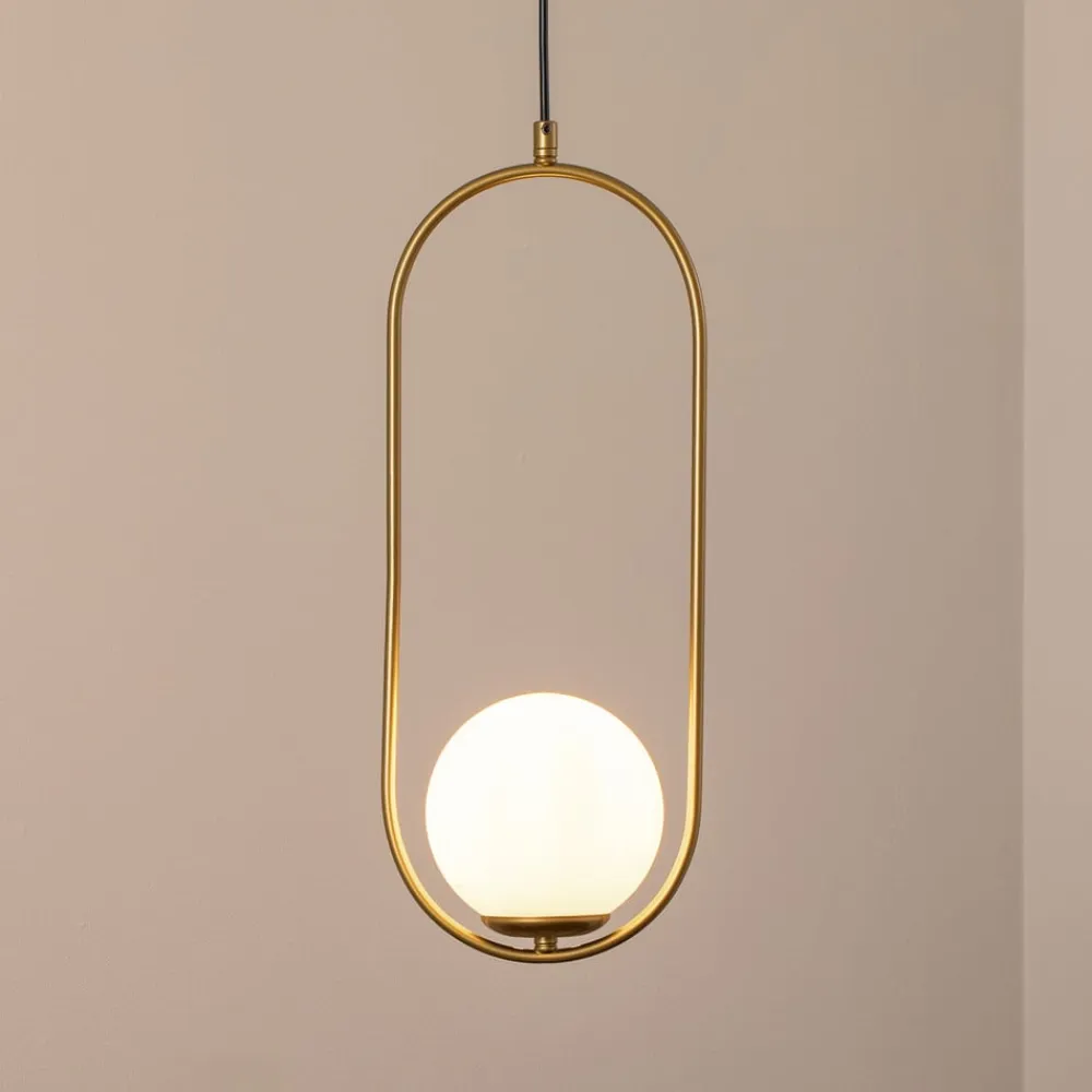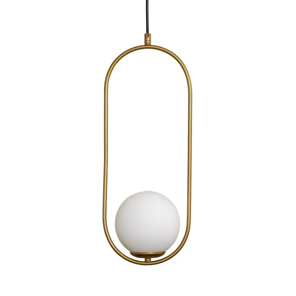 Hængelampe Mudoni, guld/hvid, glas, metal, E27
