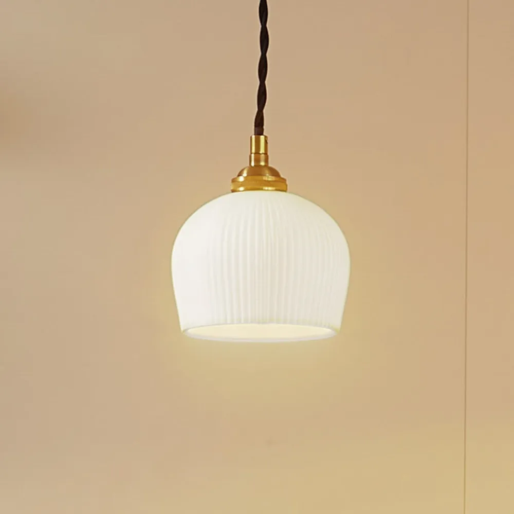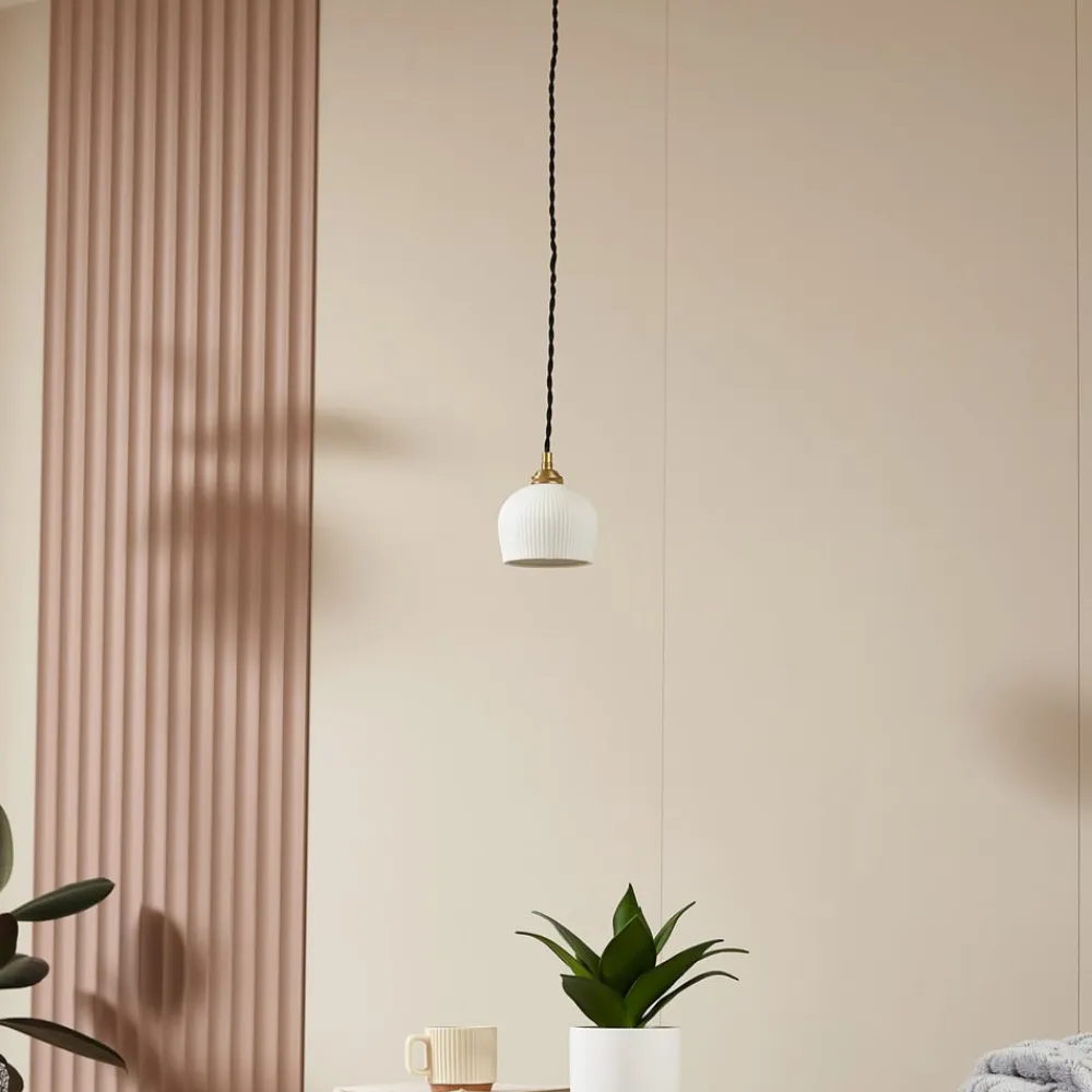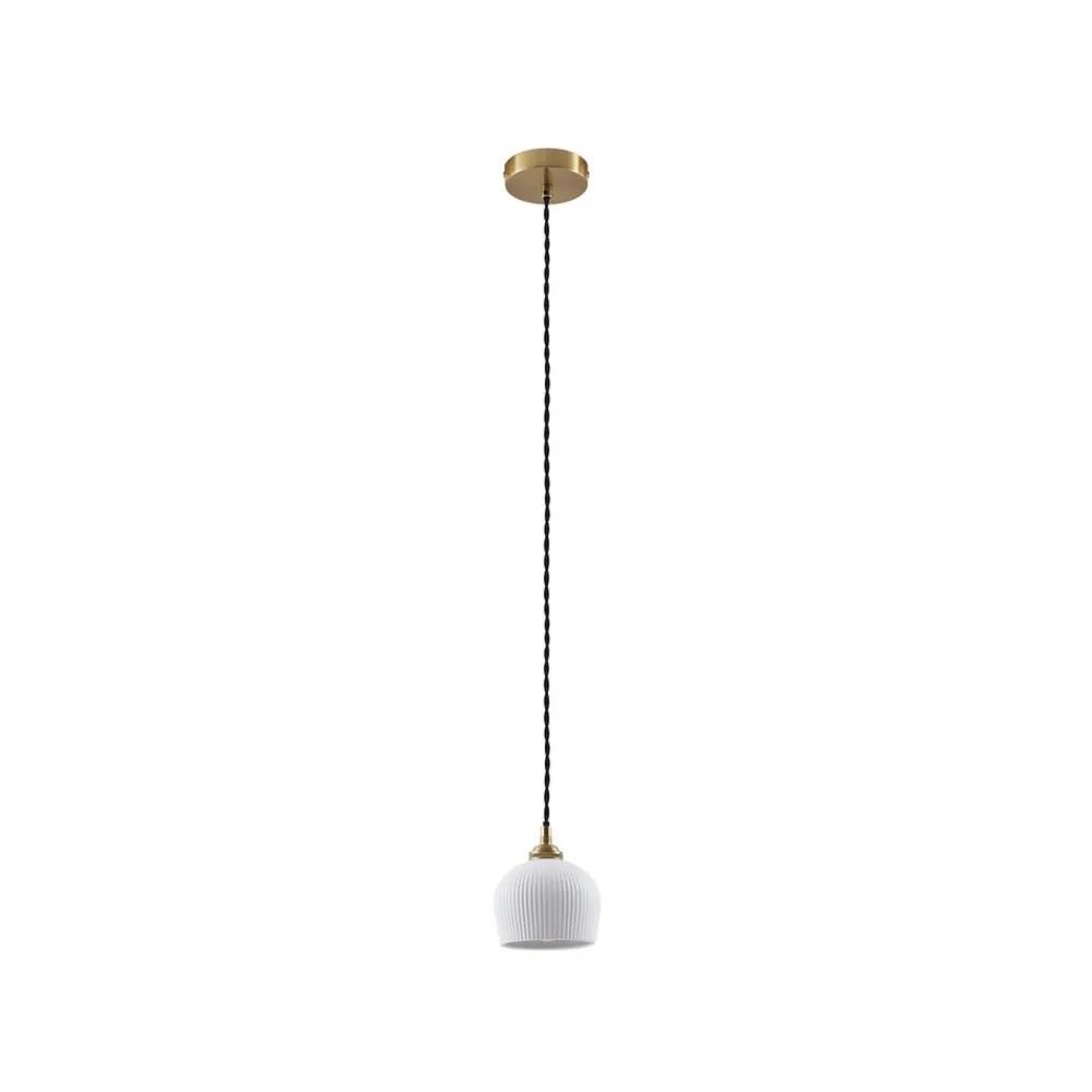 hængelampe Nolane, Ø 11 cm, keramik, hvid/messing^Lindby New