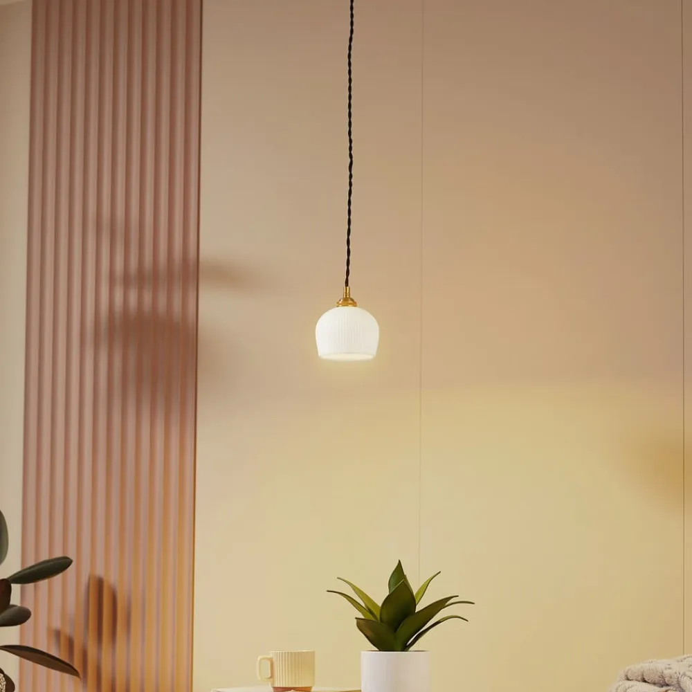 Lindby hængelampe Nolane, Ø 11 cm, keramik, hvid/messing