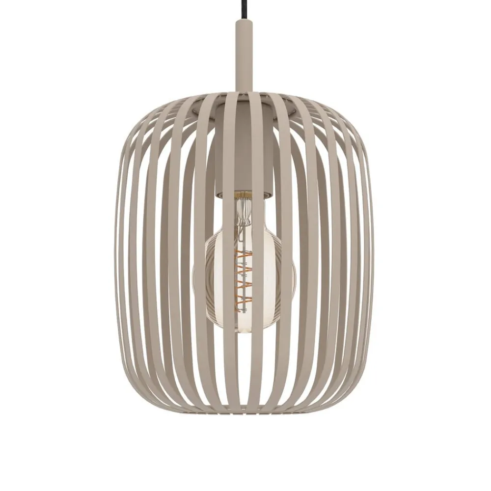 Sandfarvet Romazzina hængelampe med elegante burskærme Romazzina hængelampen er et mesterværk af belysning, der passer perfekt ind i moderne opholds- og spisestuer. Med sine sandfarvede stålskærme har den en tidløs elegance, der fremhæver ethvert rum. Romazzina skaber en atmosfære af varme og komfort med sin bløde glød, samtidig med at den giver et inspirerende miljø til kreative eller produktive øjeblikke. Lampen er ikke kun et visuelt blikfang, men også en garanti for stemningsfuld belysning, der tilpasser sig perfekt til rummets behov – eksternt dæmpbar