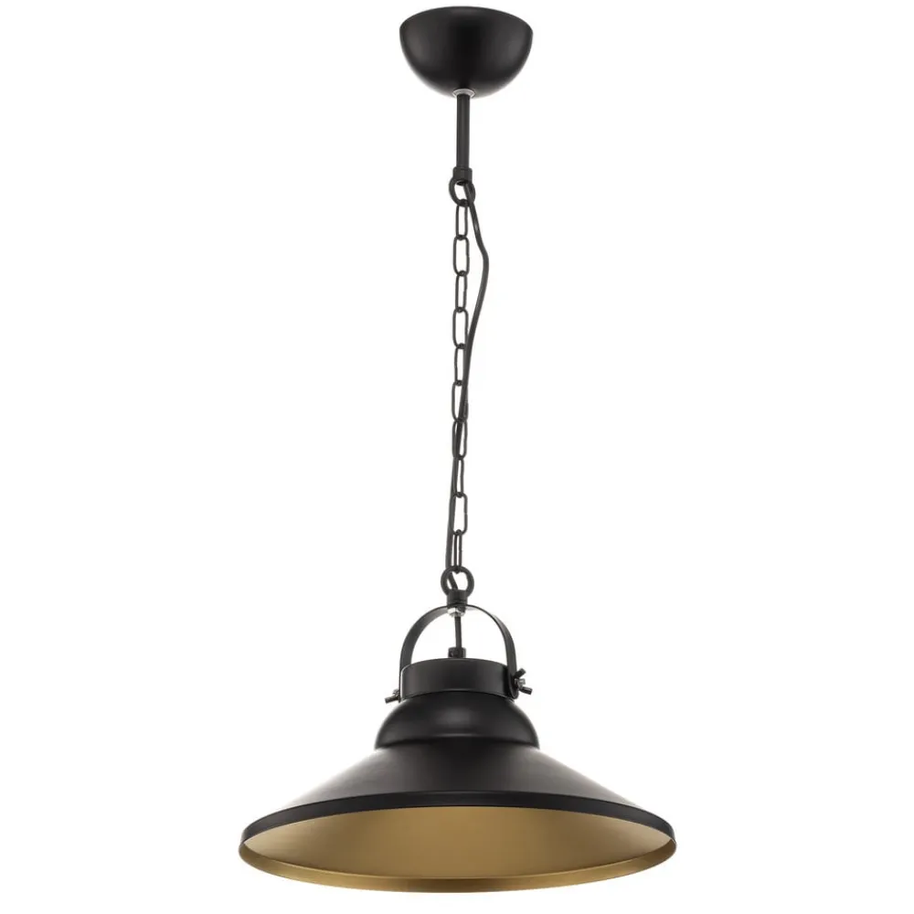Hængelampen Taft kombinerer industrielt design med en elegant farve i sort og guld. Fremstillet af rustfrit stål og plast i høj kvalitet, tilbyder denne lampe ikke kun en robust konstruktion, men også en æstetisk berigelse til ethvert rum. Uanset om det er i stuen, i køkkenet, i entreen eller i spisestuen – hængelampen Taft sætter stilfulde accenter og skaber en fascinerende atmosfære.