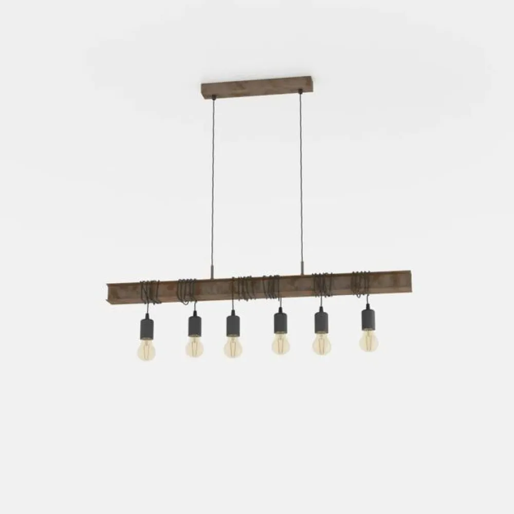 Den brune hængelampe består af en aflang holder, der visuelt mindre om en ståldrager og dermed bringer en industriel fornemmelse med ind inden for ens egne fire vægge. Rundt om drageren slynger der sig flere tætliggende kabler, hvor der samlet set hænger seks fatninger fra samt lyskilder (medfølger ikke). På den måde opstår der et strålende lysdesign, der frem for alt kan udspille sit fulde potentiale over spisebordet eller køkkenøen.