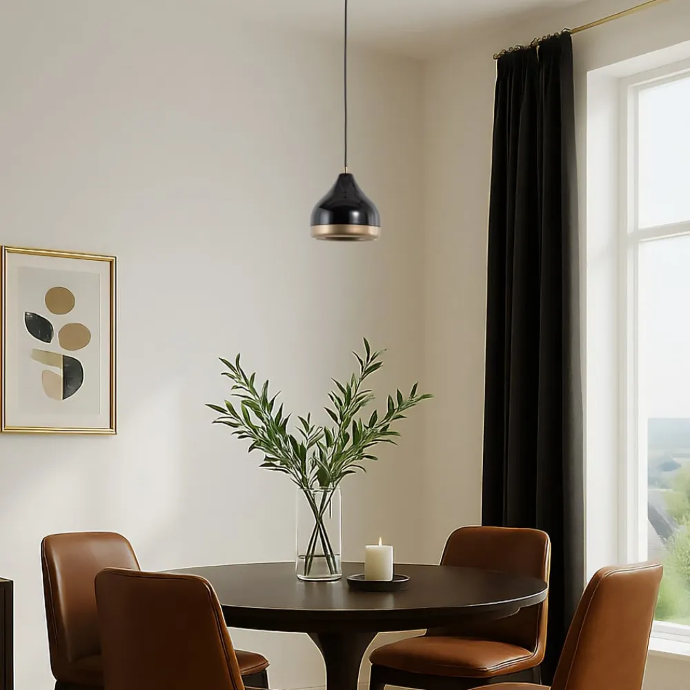 Hængelampe Yildo: Elegant kombination af sort og guld for stilfulde accenter