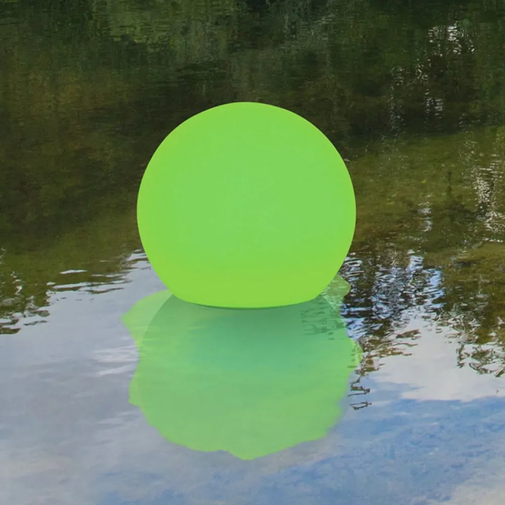 Kuglen er udstyret med et solpanel og leveres med en jordspids. Globo er også flydbar (IP67) og derfor ikke kun til brug i haven, men også til en vandoverflade, såsom B. en dam, egnet.