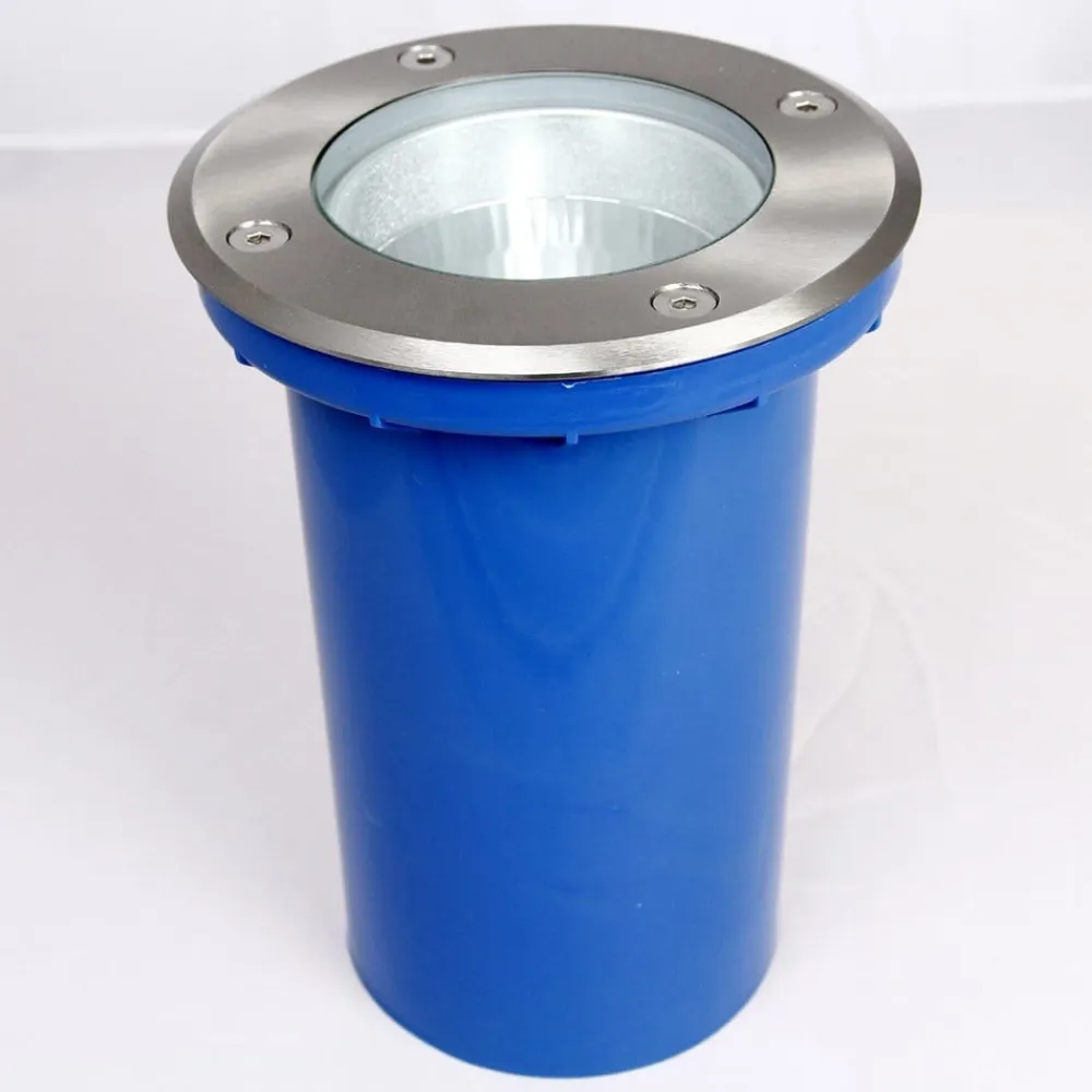 Blå nedgravningsspot Berlin rund Nedgravningsspottet Berlin kan belastes med en maksimal vægt på et ton. Den høje kvalitet afspejles også i plasthuset og dækslet i rustfrit stål. Med en diameter på 14,2 centimeter er installationsdybden 20,3 centimeter. Kapslingsgraden på IP67 sikrer, at den nye ejer kan bruge nedgravningslampen udendørs uden problemer. Det er dog ikke meningen, at den skal installeres i fordybninger, og man bør også sørge for tilstrækkelig dræning, så stående vand ikke kan skade nedgravningsspottet fra Berlin.