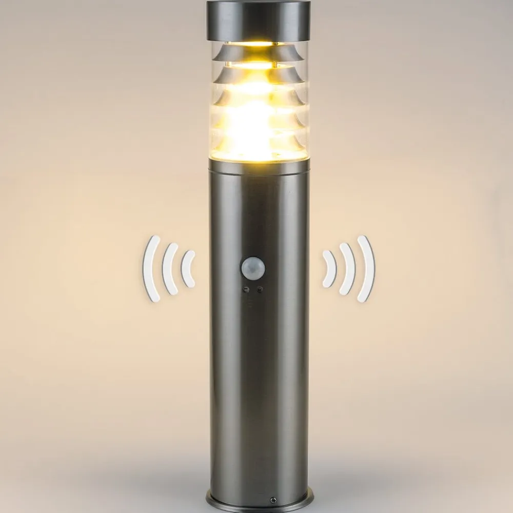 Sokkellampen Saturn har et moderne design med sit sølvfarvede lampehus i rustfrit stål. På sokkelhovedet er der elegante lysudgangsspalter og en gennemsigtig afskærmning i polycarbonat. Så trænger hverken støv eller fugt ind i lampen. Den integrerede bevægelsessensor har en praktisk dag-/nattefunktion. Bevægelsessensoren har en rækkevidde på 6-7 meter og registrerer bevægelser i en radius på 90°. Der kan anvendes pærer med en diameter på op til 4 cm.