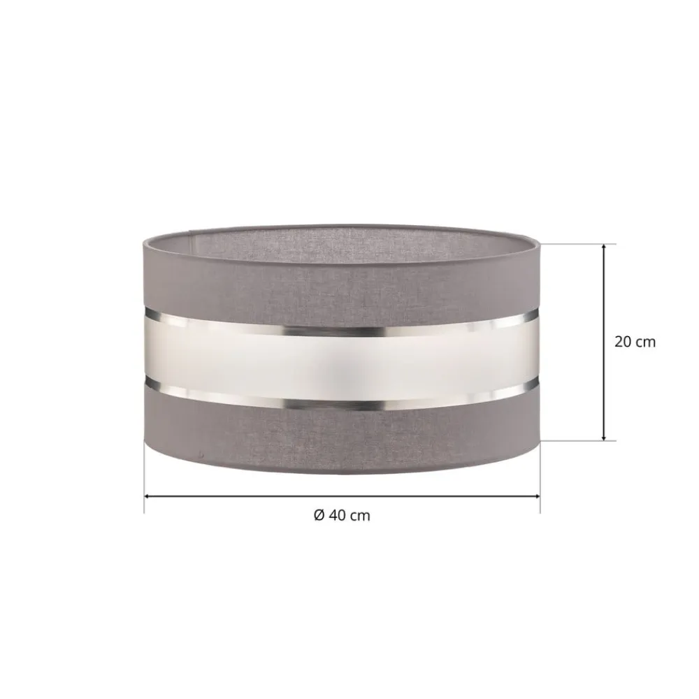 Lampeskærmen Helen forener tidløs elegance med funktionel alsidighed. Den er fremstillet af tekstil og plast i høj kvalitet og imponerer med sin raffinerede kombination af grå og sølvfarvede nuancer. Denne farve giver ethvert rum et subtilt, men alligevel markant præg, der harmonerer med forskellige indretningsstilarter. Den satinede overflade sikrer en behagelig lysspredning, der skaber en indbydende atmosfære.
