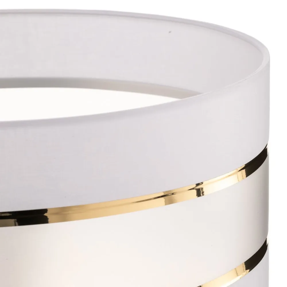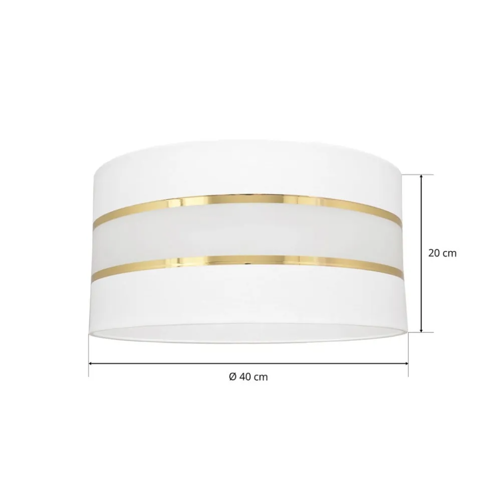 Lampeskærmen Helen imponerer med sin elegante kombination af hvid og guld satinfinish, der giver ethvert rum et luksuriøst touch. Fremstillet af tekstil og plast i høj kvalitet, tilbyder denne lampeskærm ikke kun et tiltalende udseende, men også en lang holdbarhed. Den omhyggelige forarbejdning og det tidløse design gør den til et alsidigt element, der kan integreres problemfrit i forskellige indretningsstilarter.