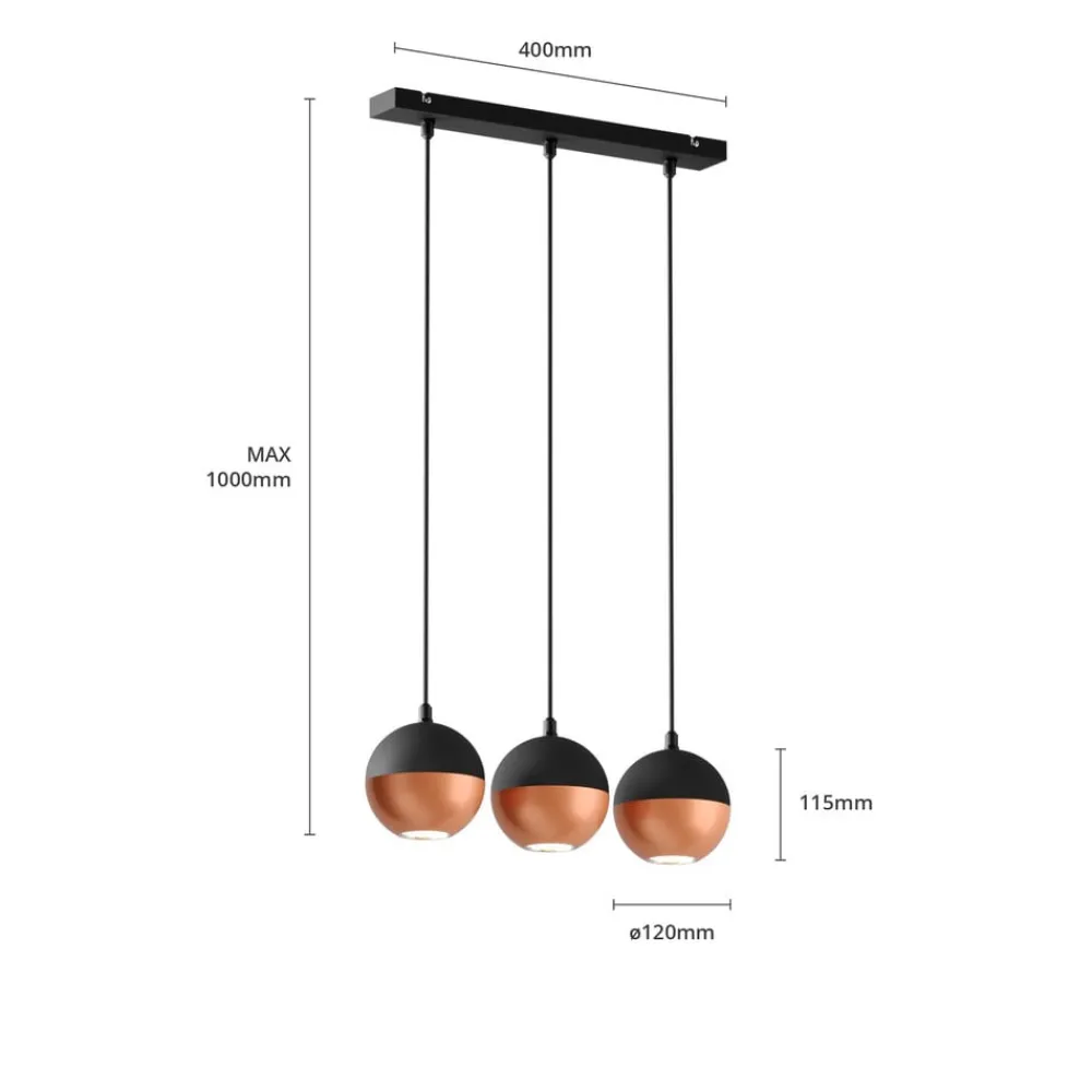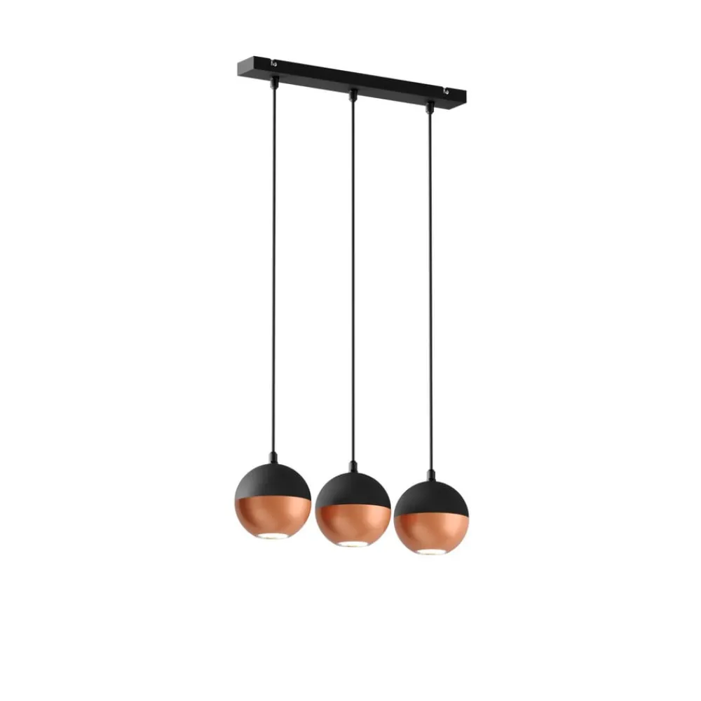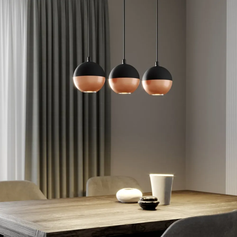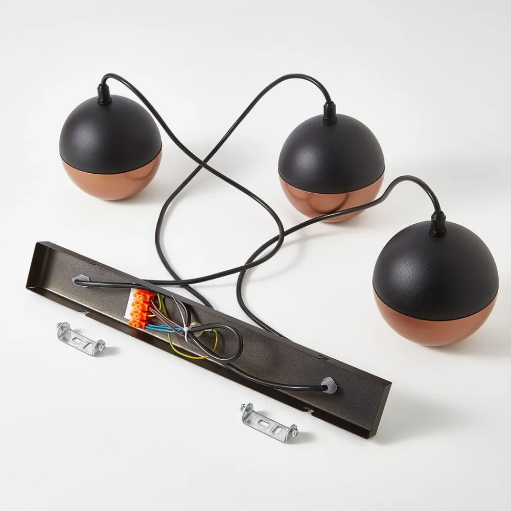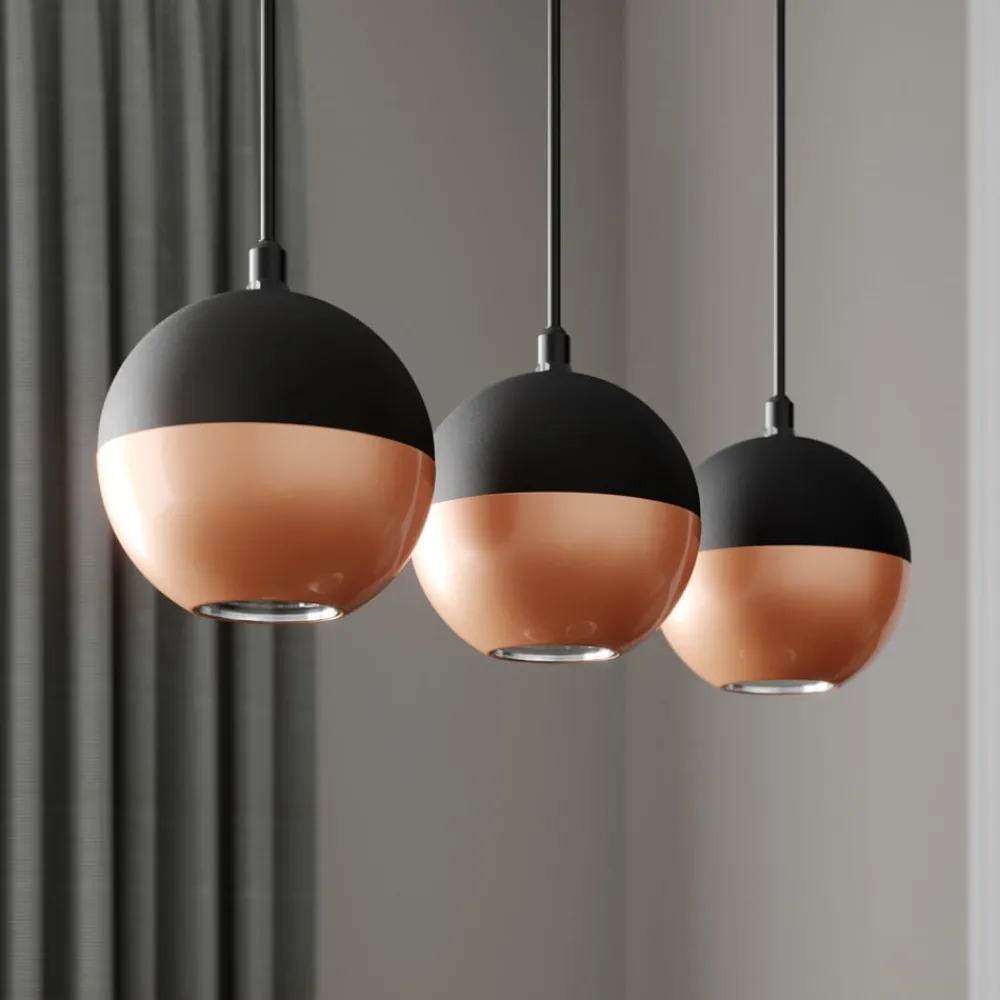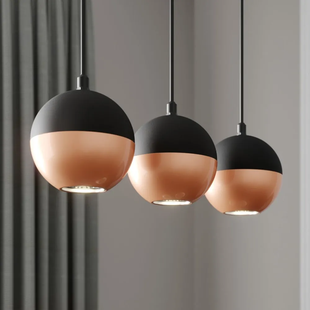 Hængelampen Midnight i sort/kobber kombinerer moderne design med funktionel belysning. Den er fremstillet af højkvalitets jern og sætter stilfulde accenter i ethvert rum. Kombinationen af sort og kobberfarvet finish giver lampen en tidløs elegance, der passer perfekt ind i forskellige indretningsstilarter. Med sin konstruktion med 3 lyskilder er den ideel til stuer, køkkener eller spisestuer, hvor den sikrer en jævn belysning.