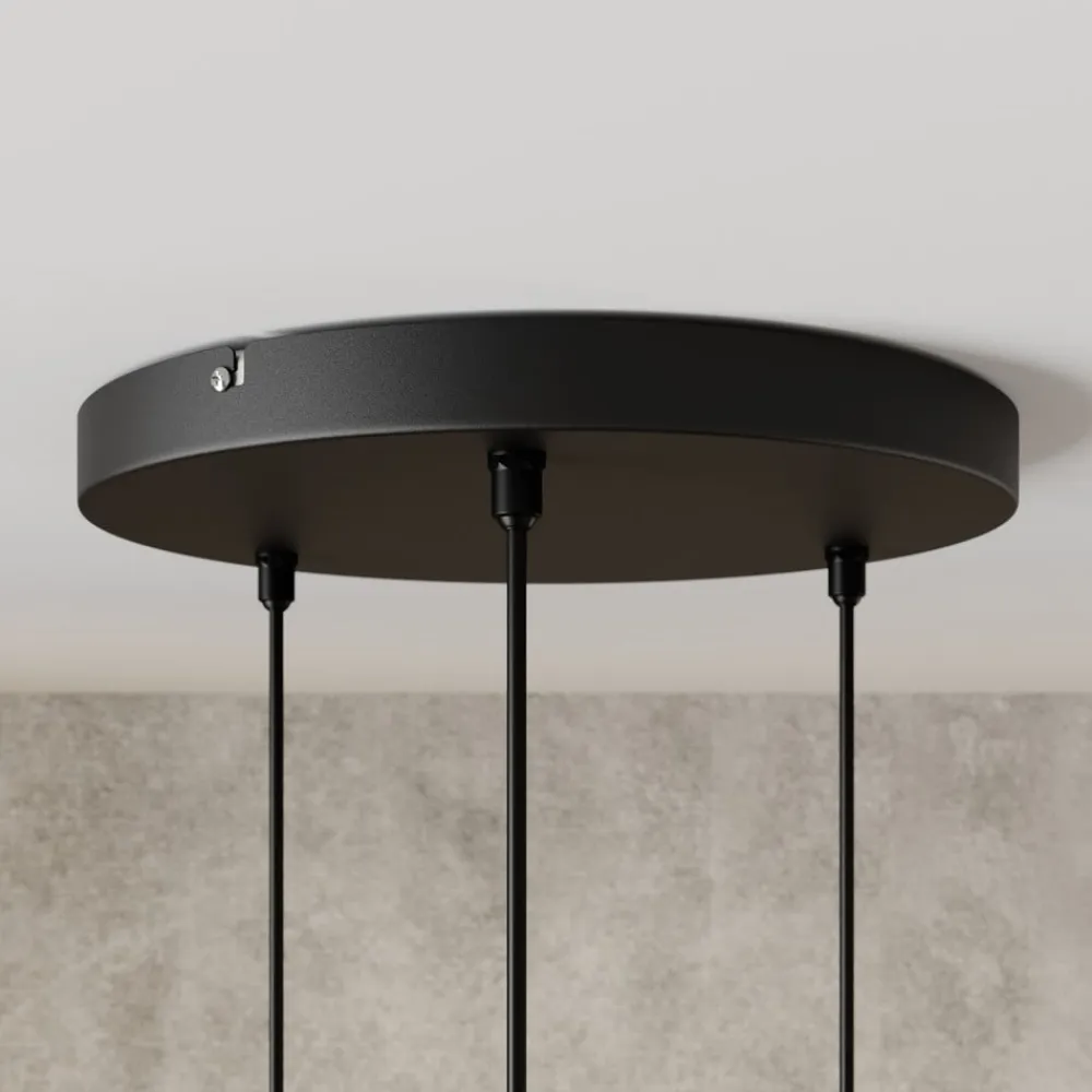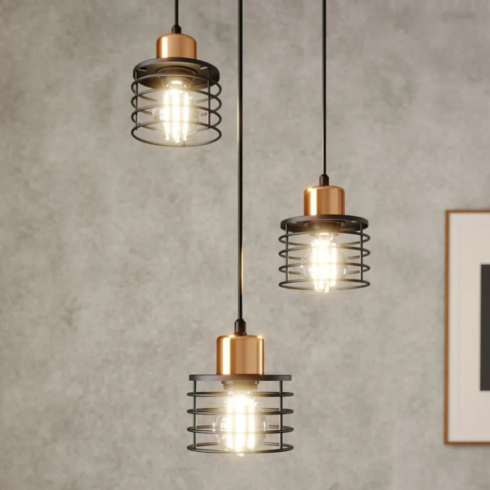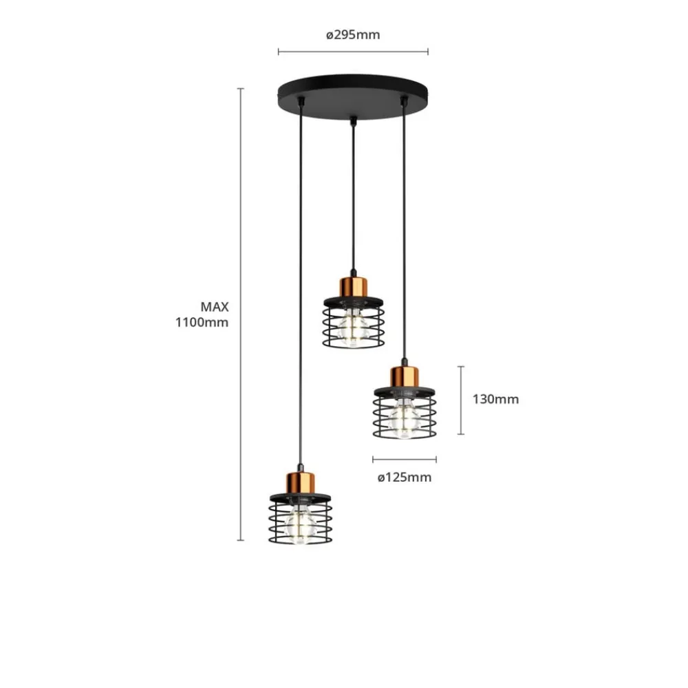 Hængelampen Edison i sort/kobber forener moderne design med funktionel alsidighed. Den er fremstillet af højkvalitetsjern og imponerer med sin stilfulde kombination af sort og kobberfarvet finish. Denne lampe passer perfekt ind i forskellige boligområder, hvad enten det er i stuen, køkkenet eller spisestuen. Den runde form med 3 lyskilder sikrer en jævn belysning og skaber en behagelig atmosfære.
