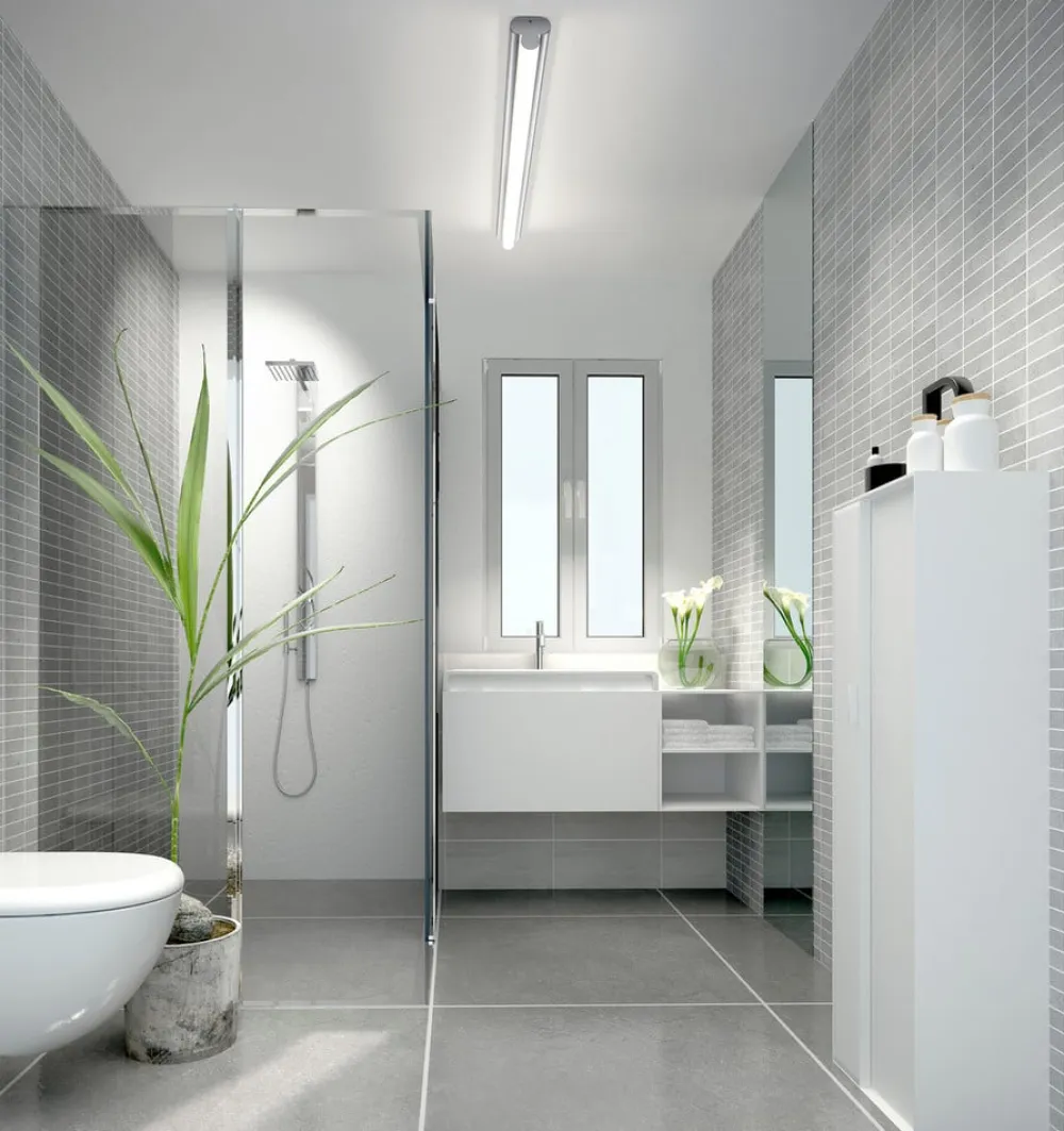 Det elegante design passer perfekt ind i moderne badeværelser, mens den energibesparende LED-teknologi tilbyder en effektiv og langtidsholdbar belysningsløsning. Kapslingsgraden IP44 gør desuden lampen optimal til brug i fugtige omgivelser.