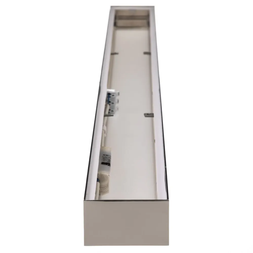De indbyggede LED’er i den aflange spejllampe Theia, udsender deres lys opad og nedad med et varmhvidt lys (2.900 K). Dermed er det ikke kun området omkring spejlet der oplyses klart, det opad strålende lys vil bade hele rummet i en indirekte belysning. Den smalle og aflange LED-spejllampe med blank kromfinish er udstyret med en satineret afdækning, øverst og nederst, og er endvidere beskyttet mod stænkvand med IP44.