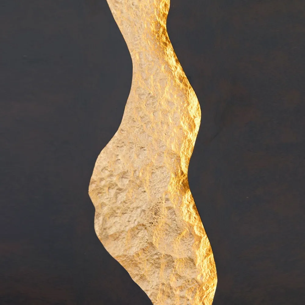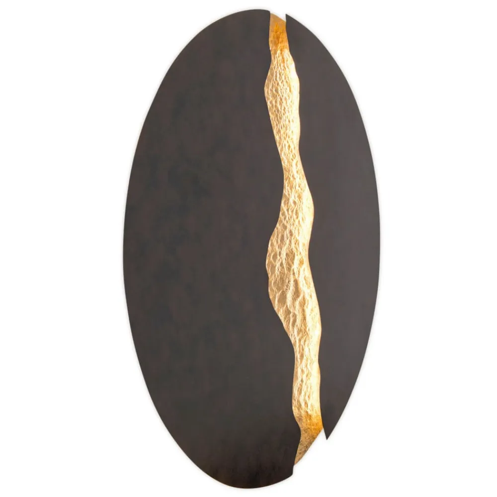 Energieffektiv LED-lyskilde med indirekte lysemission samt en imponerende dekorativ genstand – det er LED-væglampen Lava. Den består af en stor, brun-sort jernskive, der er delt i midten af en guldfarvet hamret strimmel. Indtrykket opstår af gløder midt i flydende lava. Dette indtryk understreges af den indirekte LED-belysning, der omgiver armaturet som helhed og understreger det guldfarvede element.