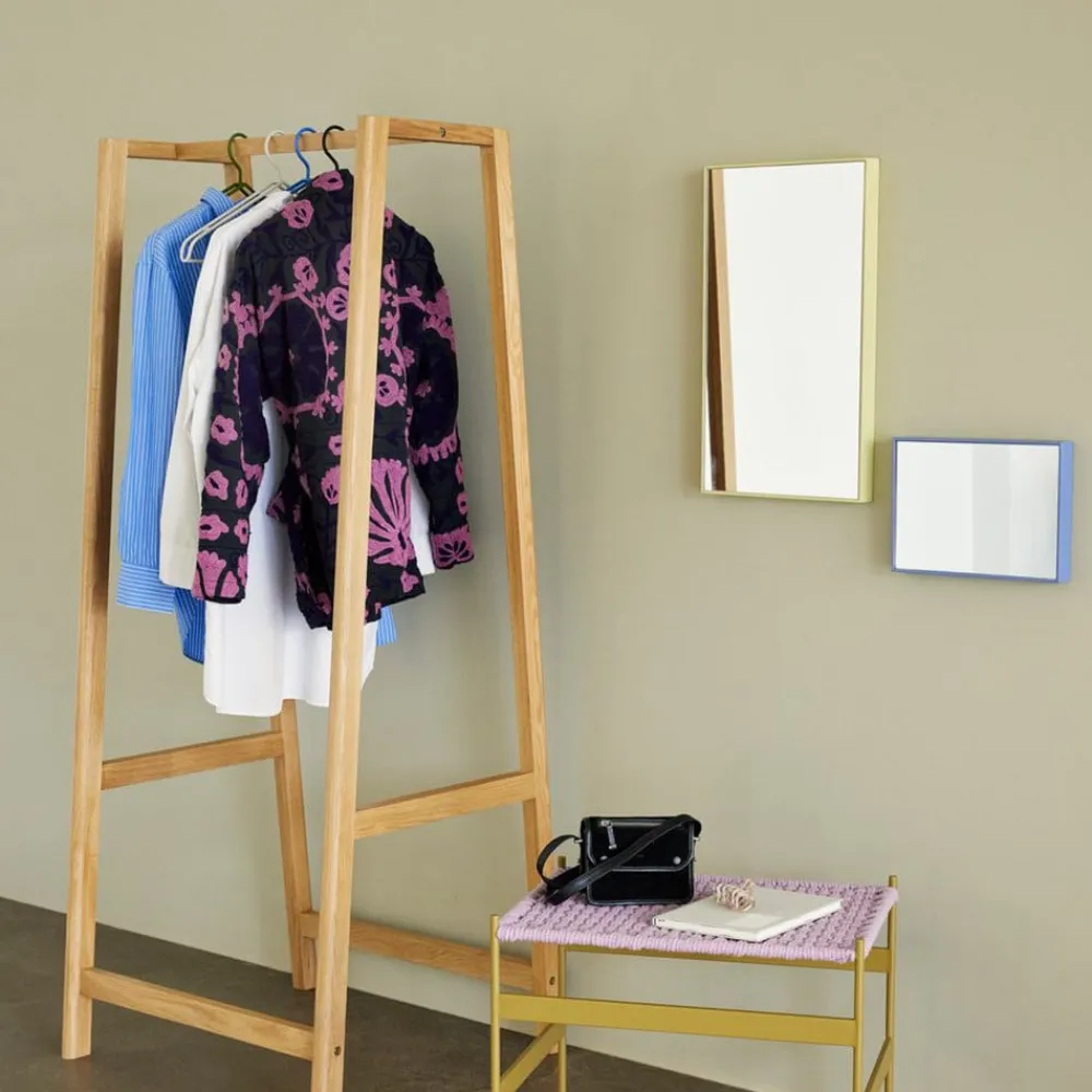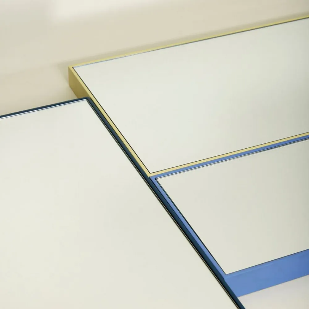 Rektangulært Shine-spejl med gul metalramme Spejlene i Shine-serien er perfekte både enkeltvis og som gruppe. Dette spejl med gul ramme er ideelt som et dekorativt statement på gulvet og kan også hænges roligt og stilfuldt på væggen. Alle Shine-spejle kan hænges både lodret og vandret.