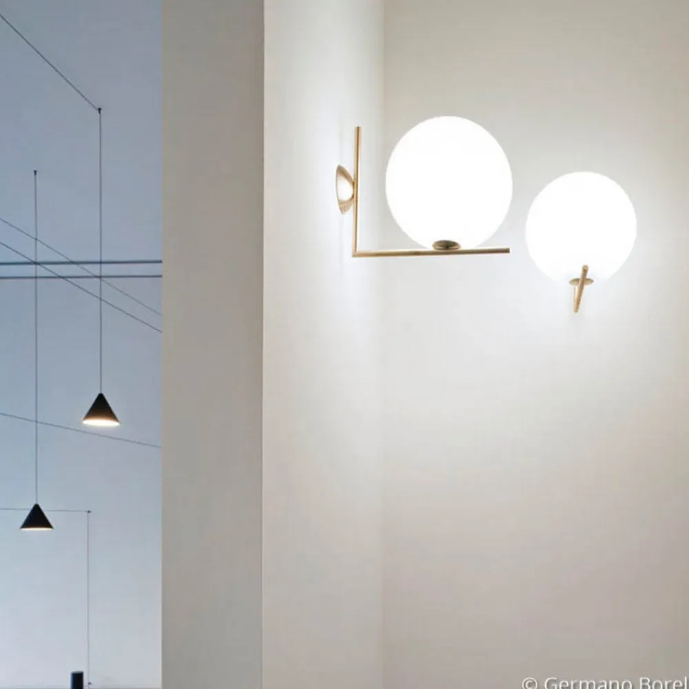 Klassisk design for IC C/W1 væglampen fra FLOS Vægbeslaget i børstet messing kombineret med den hvide sfæriske glasskærm skaber et harmonisk billede af en klassisk væglampe. IC C/W1 giver et blødt, blændfrit lys takket være glassets beskaffenhed, som også sikrer en jævn lysfordeling. Kuglen ser ud til at hænge fra beslaget som på en silketråd – et særligt designtræk, der straks forvandler væglampen til et sofistikeret designermøbel. Michael Anastassiades, der har designet lamperne i IC-serien for FLOS, har også udviklet to andre lamper for den italienske designerlampe-fabrikant: String Light og Copycat. Anastassiades er en af mange kendte designere, der arbejder for FLOS og sørger for, at designerlamperne fra Italien nyder et fremragende ry verden over.