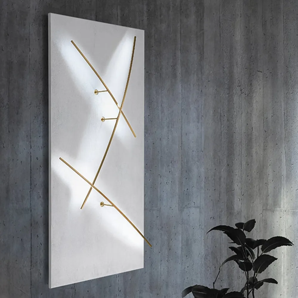 LED-væglampe Albatros med rektangulær vægplade og tre stænger i messingVæglampen Albatros, designet af Marco Pagnoncelli for den italienske producent ICONE, præsenterer sig selv som en behagelig, indirekte lyskilde med karakter af et maleri. Tre buede, krydsende aluminiumsstave med messingfinish er monteret med en vis afstand foran den store, rektangulære vægplade. Deres karakteristiske struktur og farve understreges på vidunderlig vis af de LED’er, der er integreret på bagsiden af stængerne.- eksternt dæmpbar via Triac- god farvegengivelse: CRI 90- montering mulig i vandret såvel som lodret retning