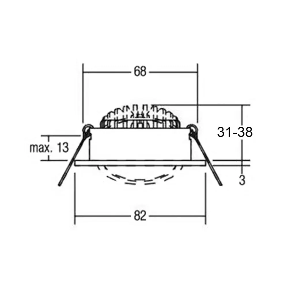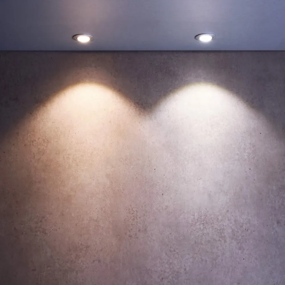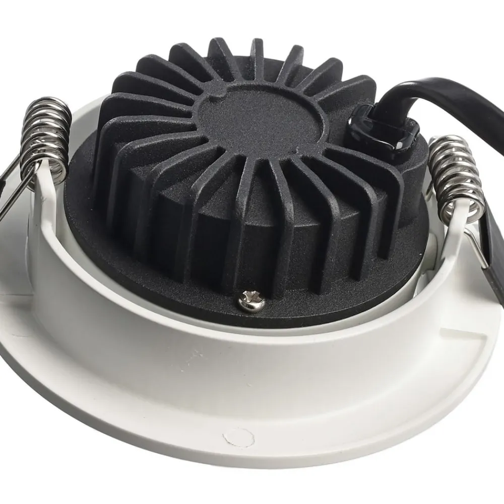 Den runde indbygget spotlight med LED Dione kræver kun et lofthulrum på 25 millimeter til montering, da den har en særlig lav indbyggedybde. Tilslutningsboksen og det dæmpbare LED-netværk er en del af leveringsomfanget og kan også placeres i loftudskæringen på grund af den kompakte konstruktion. Diones komponenter er formonterede, hvilket muliggør en hurtig installation uden brug af værktøj.