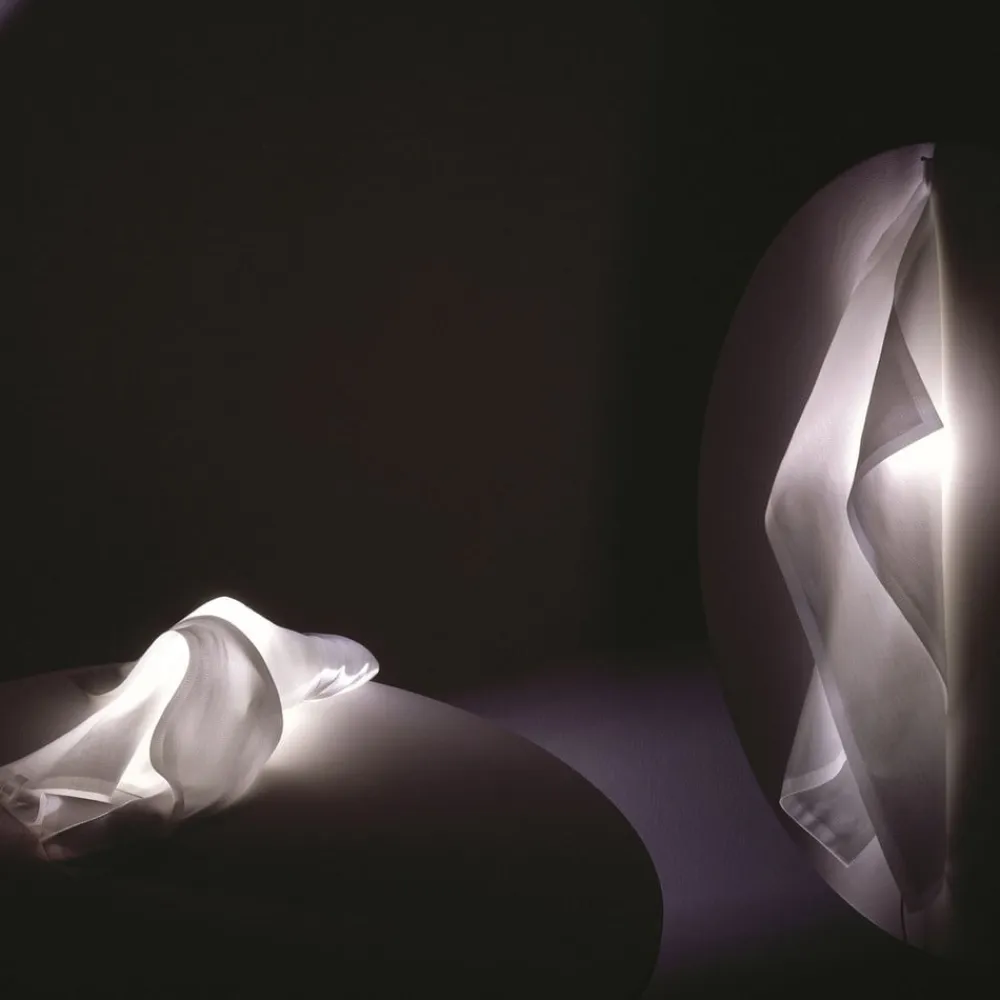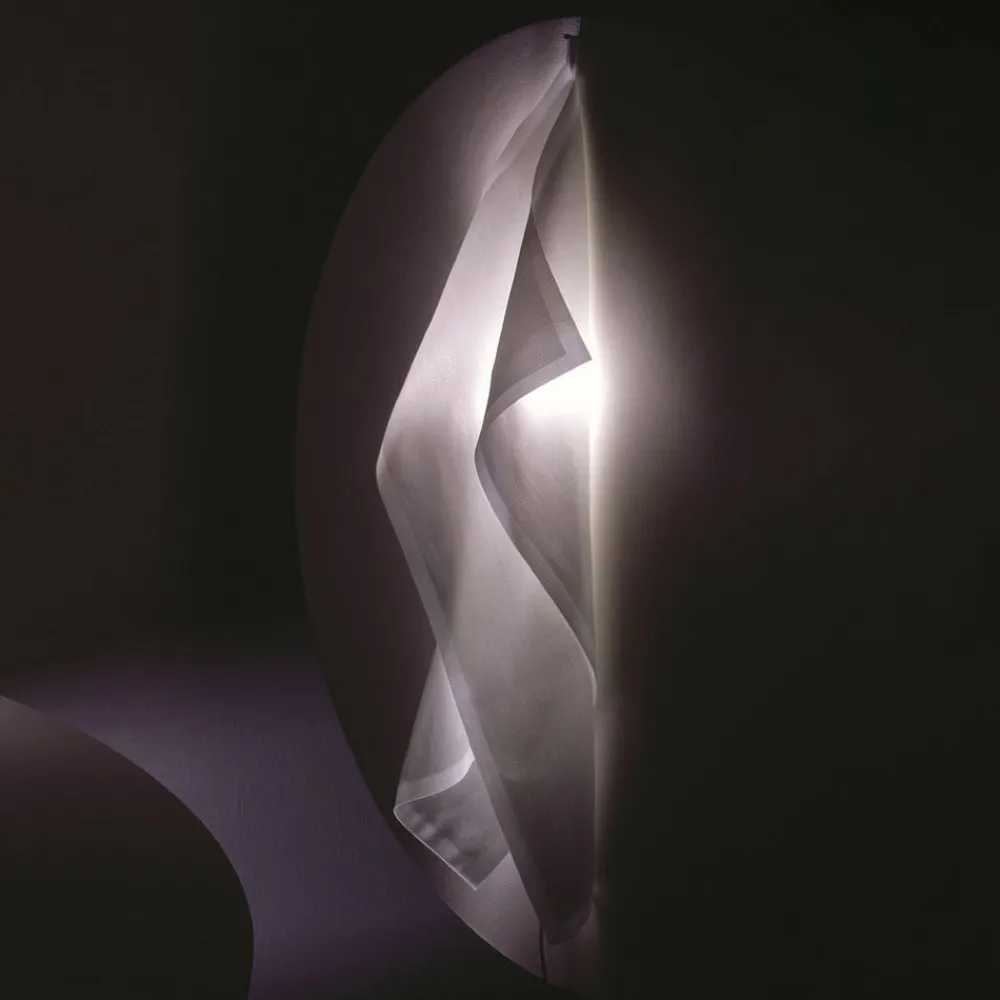 Designervæglampen Delight lyser som et oplyst håndklæde Væglampen Delight, som består af glasstof, der er varmebestandigt op til 180° og – monteret på væggen – ligner et oplyst håndklæde, er usædvanlig i sit udseende og det anvendte materiale. Designerne Frans van Nieuwenborg & Matijn Wegman har udviklet en usædvanlig lampe for Ingo Maurer med denne sammensætning af glasstof, som er monteret på væggen og oplyst med en E27-lampe. Takket være materialets varmebestandighed og fleksibilitet kan kludens form tilpasses efter ønske. Således kan den ene bidrage til at vildlede gæsterne, mens den anden skaber et kunstnerisk lyskoncept i entreen.illuminant fås via tilbehøret.