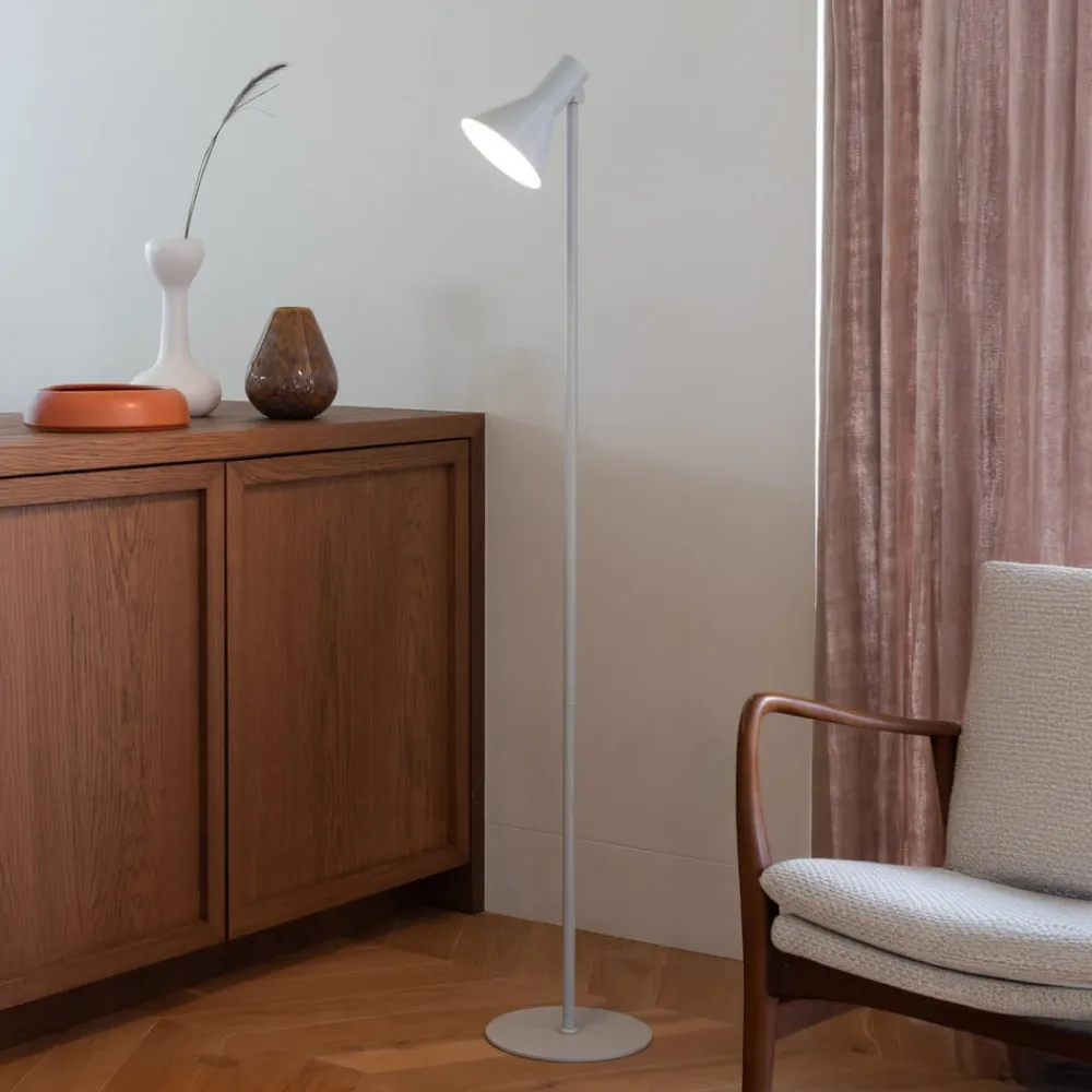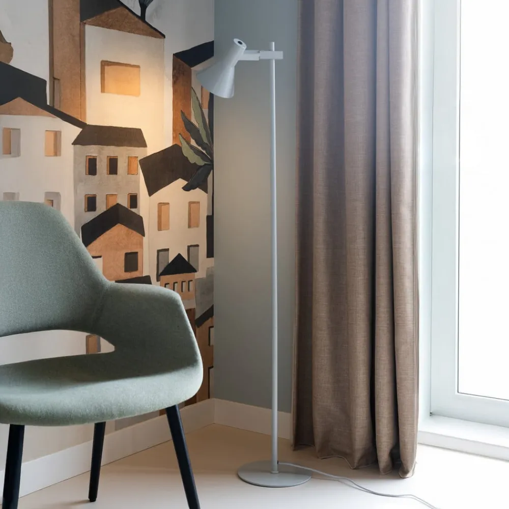 Stavanger gulvlampe kombinerer minimalistisk skandinavisk design med et klart formsprog og materialer af høj kvalitet. Den er fremstillet af robust jern og holdt i en diskret lysegrå farve, så den passer harmonisk ind i forskellige boligområder. Uanset om det er i stuen, spisestuen eller soveværelset, sætter lampen stilfulde accenter og supplerer interiøret med sin enkle elegance.