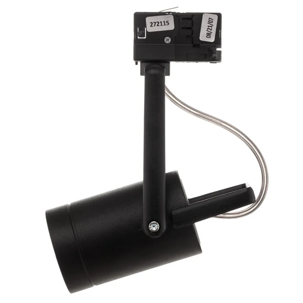 Denne skinnespot er ideel til målrettet præsentationsbelysning, f.eks. over produktdisplays, i butiksvinduer og showrooms. Drim er fremstillet af aluminium, har en monokrom finish og et teknisk moderne design. Det cylindriske armaturhoved kan drejes og svinges på monteringsbeslaget. Et håndtag på bagsiden gør håndteringen lettere. Spottet kan udstyres med PAR30-lamper efter eget valg med E27-sokkel.