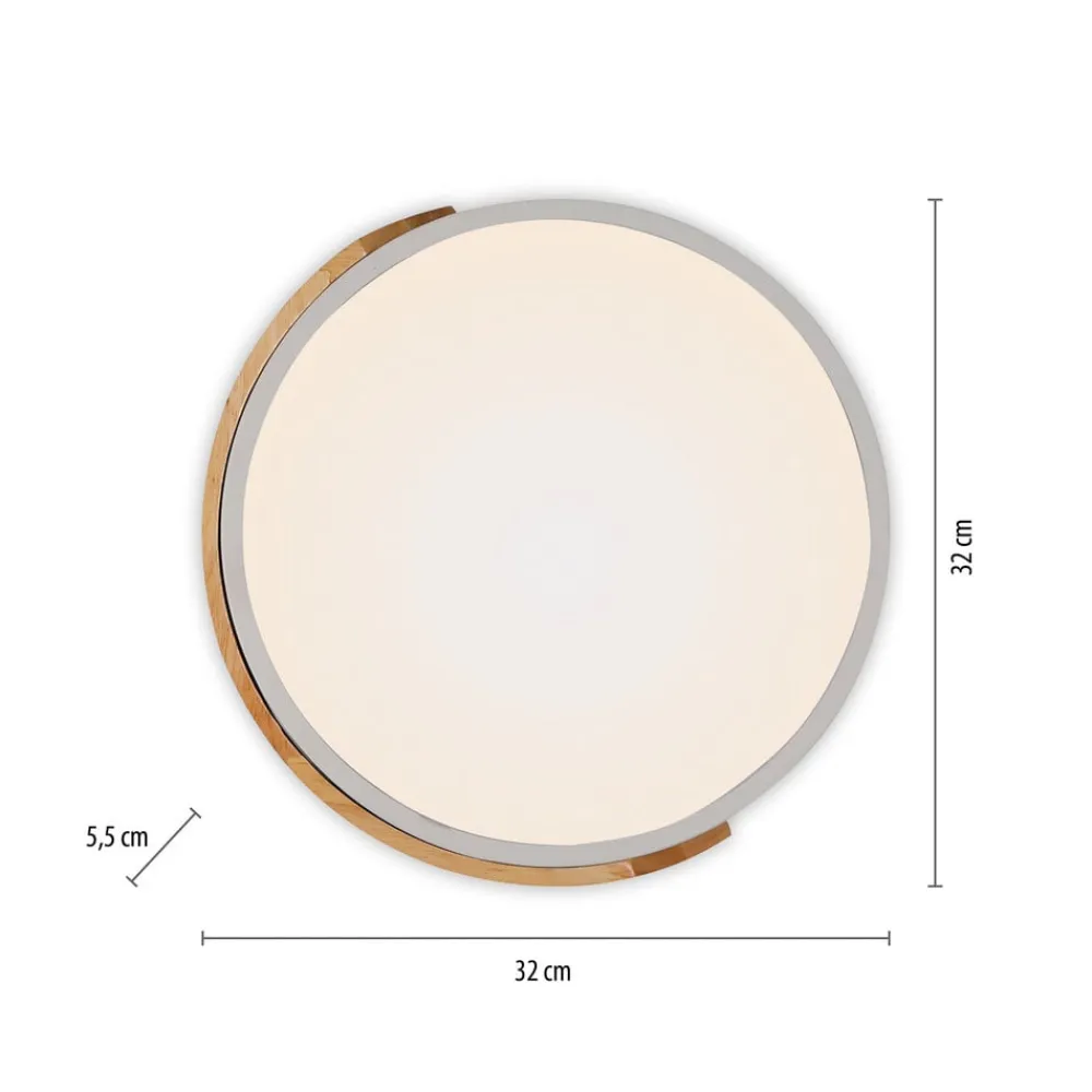 JUST LIGHT. Bila LED-loftslampe, hvid, Ø 32 cm, træ